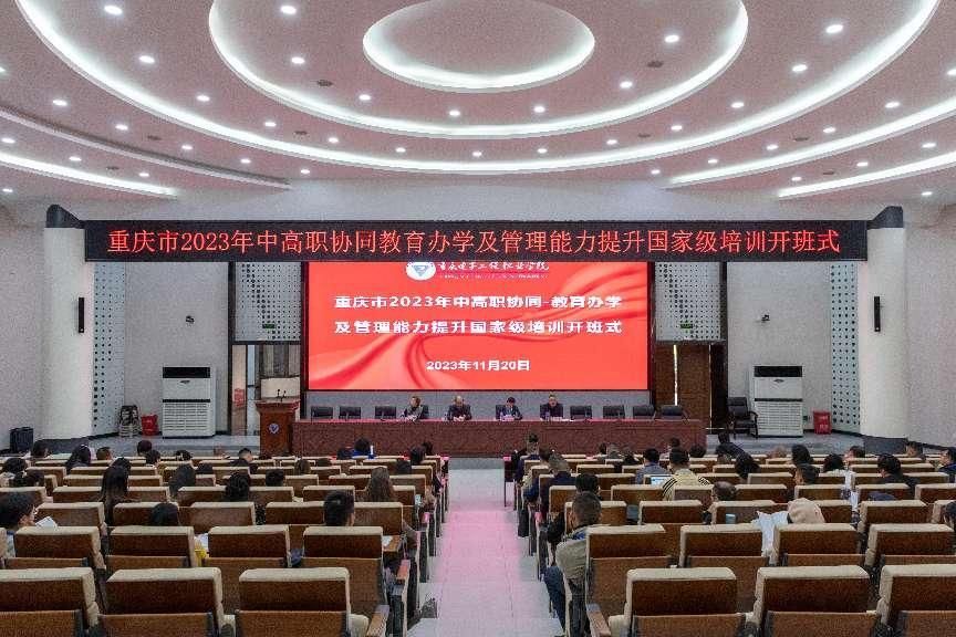 11月20日,由重庆市教委主办、重庆市职业教育学会联合我校国培基地承办的重庆市2023年中高职协同-教育办学及管理能力提升国家级培训班在我校国培基地院博远厅顺利开班举办。重庆市职业教育学会驻会副会长兼秘书长况力同志,重庆市职业教育学会宣传培训部袁丽娟主任,教育部国培(重电)基地办主任、重庆电子工程职业学院职教师资培训学院书记兼院长莫绍强教授,以及来自重庆市中高职院校100名管理干部参加了开班仪式。开班仪式由国培基地办副主任张亚主持。