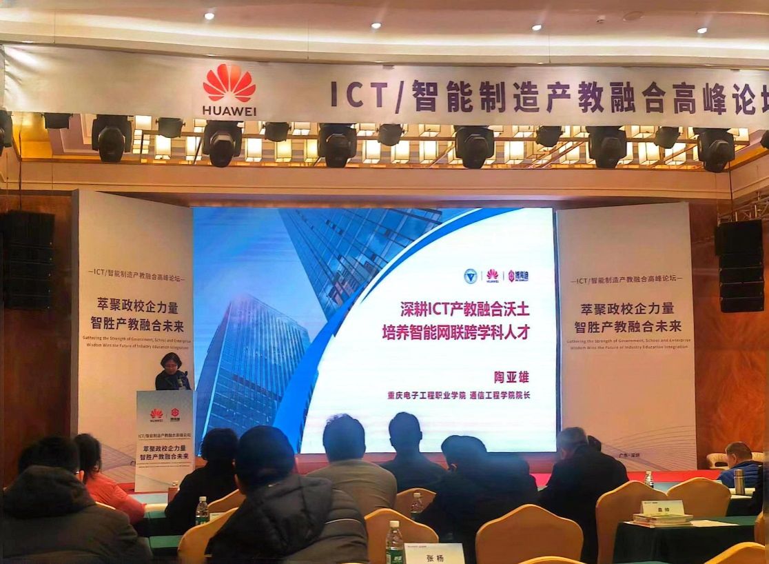 为深入贯彻党的二十大精神,落实中共中央办公厅、国务院办公厅印发的《关于深化现代职业教育体系建设改革的意见》,12月22日由华为技术有限公司和北京博海迪信息科技股份有限公司联合主办的“萃聚政校企力量 智胜产教融合未来”ICT/智能制造产教融合高峰论坛在深圳举办。通信工程学院院长陶亚雄教授受邀参加论坛,向与会嘉宾作了《深耕ICT产教融合沃土,培养智能网联跨学科人才》的主题报告,受到全场参会嘉宾的热烈反响。