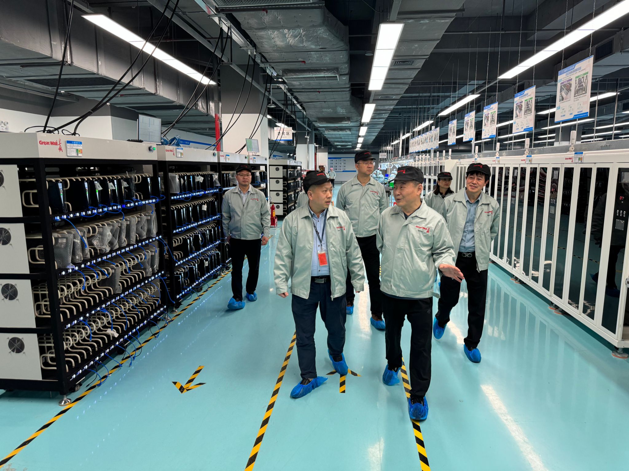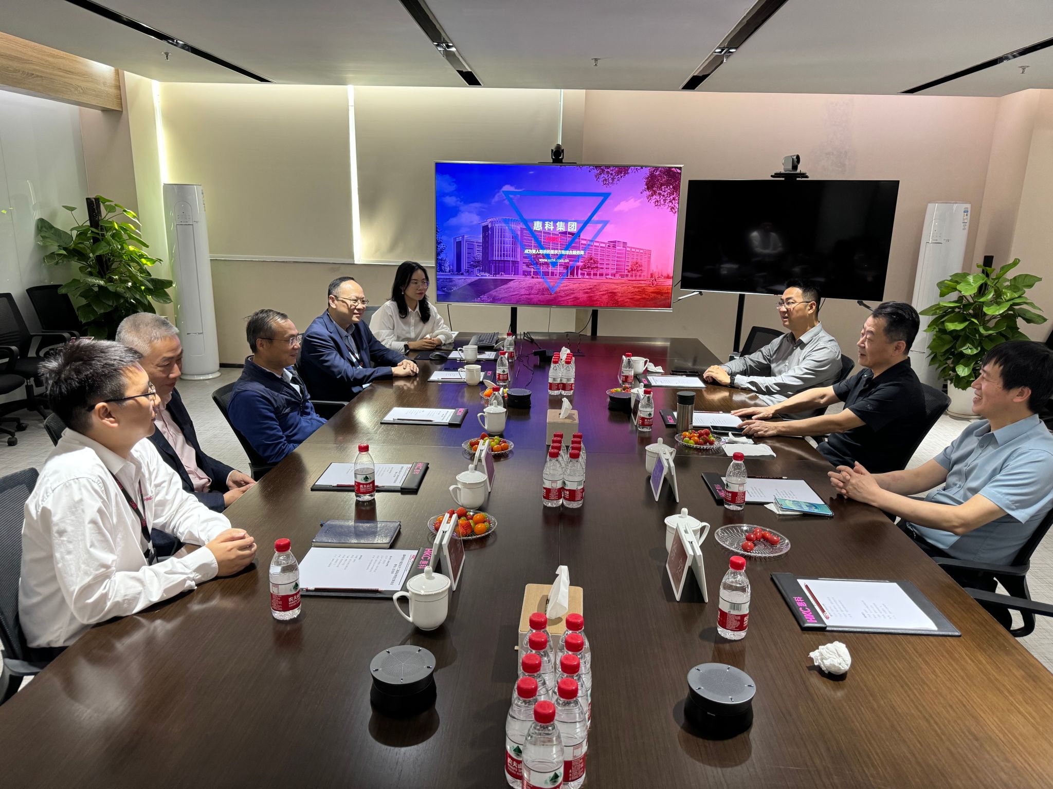 在惠科股份有限公司,在董事长王智勇先生陪同下,孙卫平一行走访参观了企业研发一线。了解了LCD显示器、液晶电视等产品,了解该公司在智能制造、人工智能等领域所取得的一系列成果和进展。