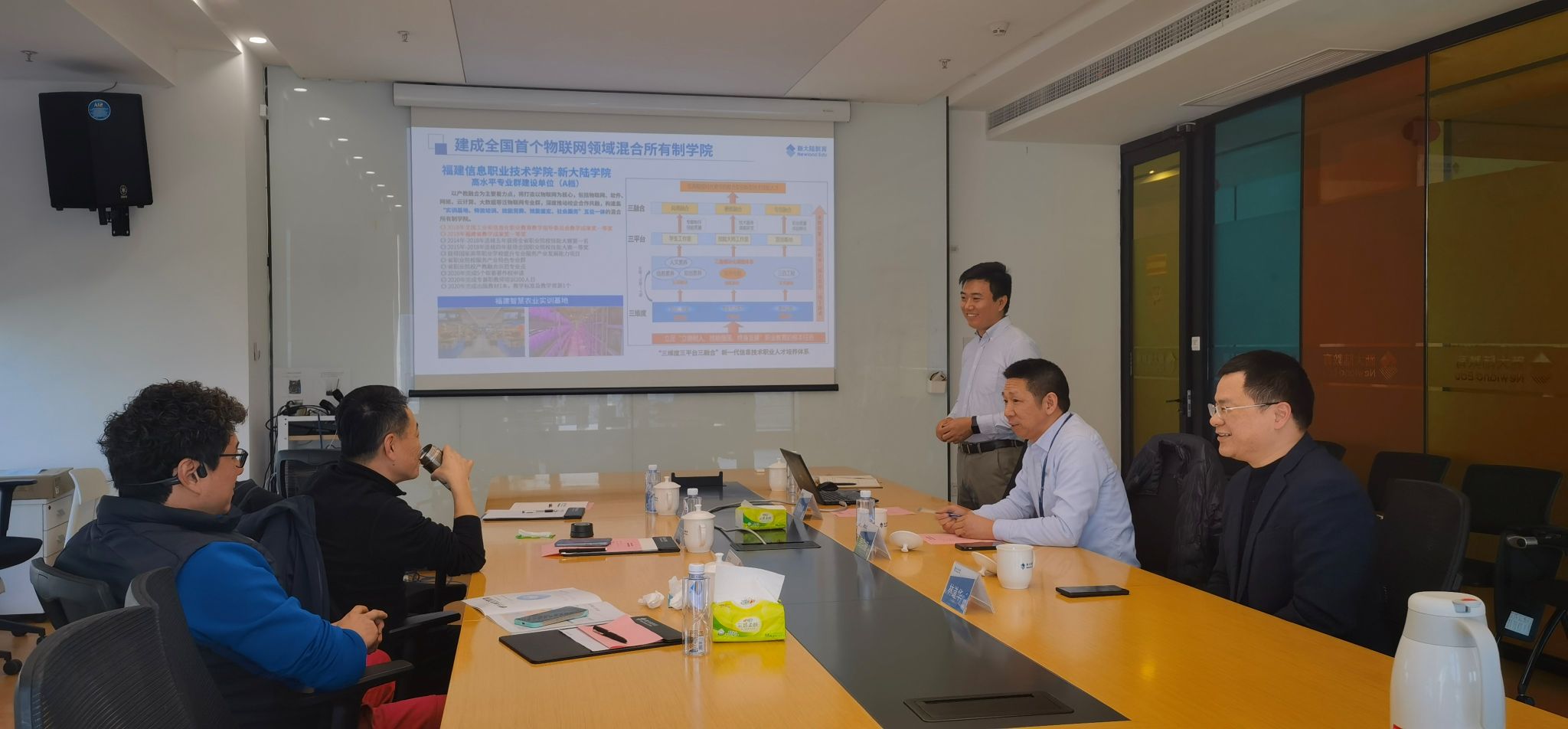 在福州市,新大陆时代教育科技有限公司总经理周洪耀、副总经理林道华、人事总监马晓峰接待了孙卫平书记一行。“新大陆教育”是新大陆科技集团成员企业,致力于面向全国院校进行校企深度合作、面向技术技能学习者进行技术技能培训及鉴定,将物联网、工业互联网、人工智能、大数据、区块链、数字金融等行业企业人才需求导入院校人才培养体系,实现数字技术产业人才培养和市场需求的“无缝对接”,现已与全国2000多所院校在专业建设、师资培养、实训基地建设、职业技能培训、鉴定等方面开展多层次合作。
