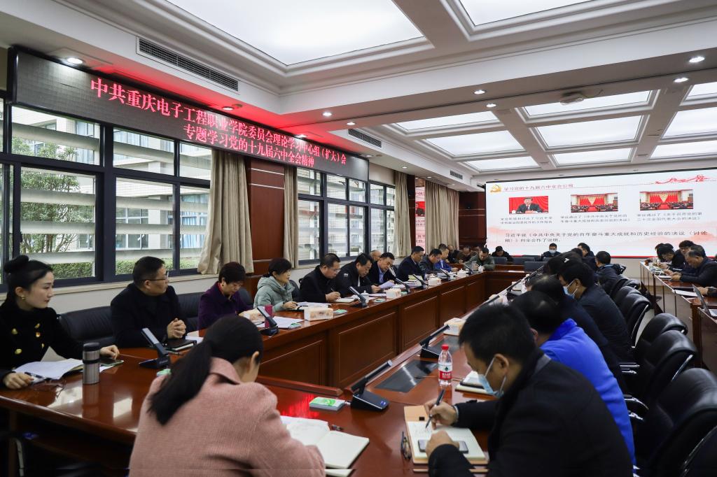 聂强校长强调,百年征程波澜壮阔。学习贯彻十九届六中全会精神,是当前和今后一个时期的首要政治任务,必须坚持深入学、系统学、反复学,真正吃透精髓、把握实质、融会贯通、入脑入心。我们要更加紧密地团结在以习近平同志为核心的党中央周围,以习近平新时代中国特色社会主义思想为指引,助推职业教育高质量发展,为实现第二个百年奋斗目标、实现中华民族伟大复兴的中国梦贡献力量。以史为鉴、开创未来。当前,在新的发展阶段,我们要加快构建纵向贯通、横向融通的中国特色现代职业教育体系,大幅提升新时代职业教育现代化水平和服务能力,为促进经济社会持续发展和提高国家竞争力提供多层次高质量的技术技能人才支撑,更好地服务构建新发展格局,推动高质量发展。埋头苦干毅勇前行。对重电而言,推进本科层次职业教育是示范建设、双高建设以来又一个重大历史战略机遇,我们每一个重电人,都要有时不我待的责任担当意识,聚精会神谋求学校发展,为学校的发展奉献自己的智慧,切实提高人才培养质量与服务区域经济社会能力,助推事业发展“提档升级”。把学校建设成为“高水平、国际化、国内顶尖、世界一流、电子信息特色鲜明”的职业技术大学,奋力书写新时代“重电”教育改革发展新篇章!