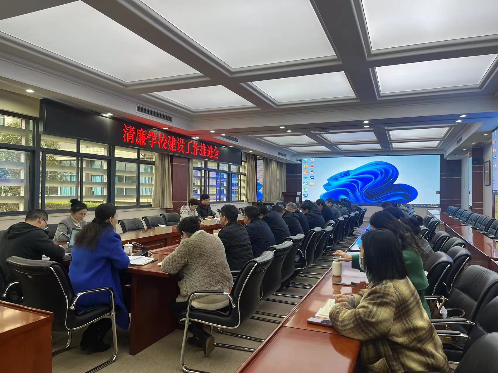 3月5日上午,学校在博润厅会议室召开“清廉学校”建设工作推进会。党委委员、副校长谢义华;党委委员、纪委书记谢涛,各二级单位负责人及党委巡察办公室相关人员参会,会议由党政办公室主任金琳主持。