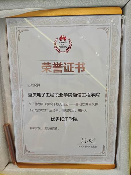 2024年3月31日,华为ICT大赛2023-2024全国总决赛颁奖典礼暨人才联盟伙伴年会在厦门大学举行,我校通信工程学院参赛的五支队伍共获特等奖1项,一等奖2项、二等奖2项的优异成绩,成绩在全国高职院校中排名第一。同时,学校还获得“华为ICT学院千校万里行-基础软件百校种子计划2023”优秀ICT学院,通信工程学院郭俊杰老师被评为优秀华为ICT学院教师。