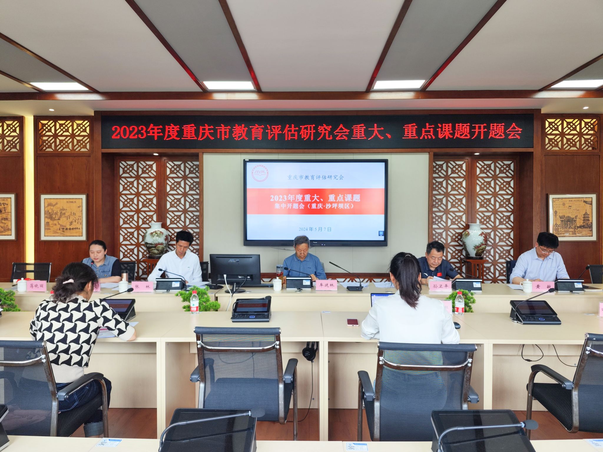 5月7日,重庆市教育评估研究会2023年度重大、重点课题第三场集中开题会我校丝路会议室举行。重庆市教育评估研究会会长、重庆市教育委员会原副主任牟延林,重庆市教育评估研究会职业教育与成人教育评估专业委员会理事长、重庆电子工程职业学院党委书记孙卫平,重庆市沙坪坝区教师进修学院副院长张林、重庆市教育评估院职业教育与成人教育评估所副所长黄敏出席开题会。会议由重庆市教育评估研究会办公室主任薄晓丽主持。