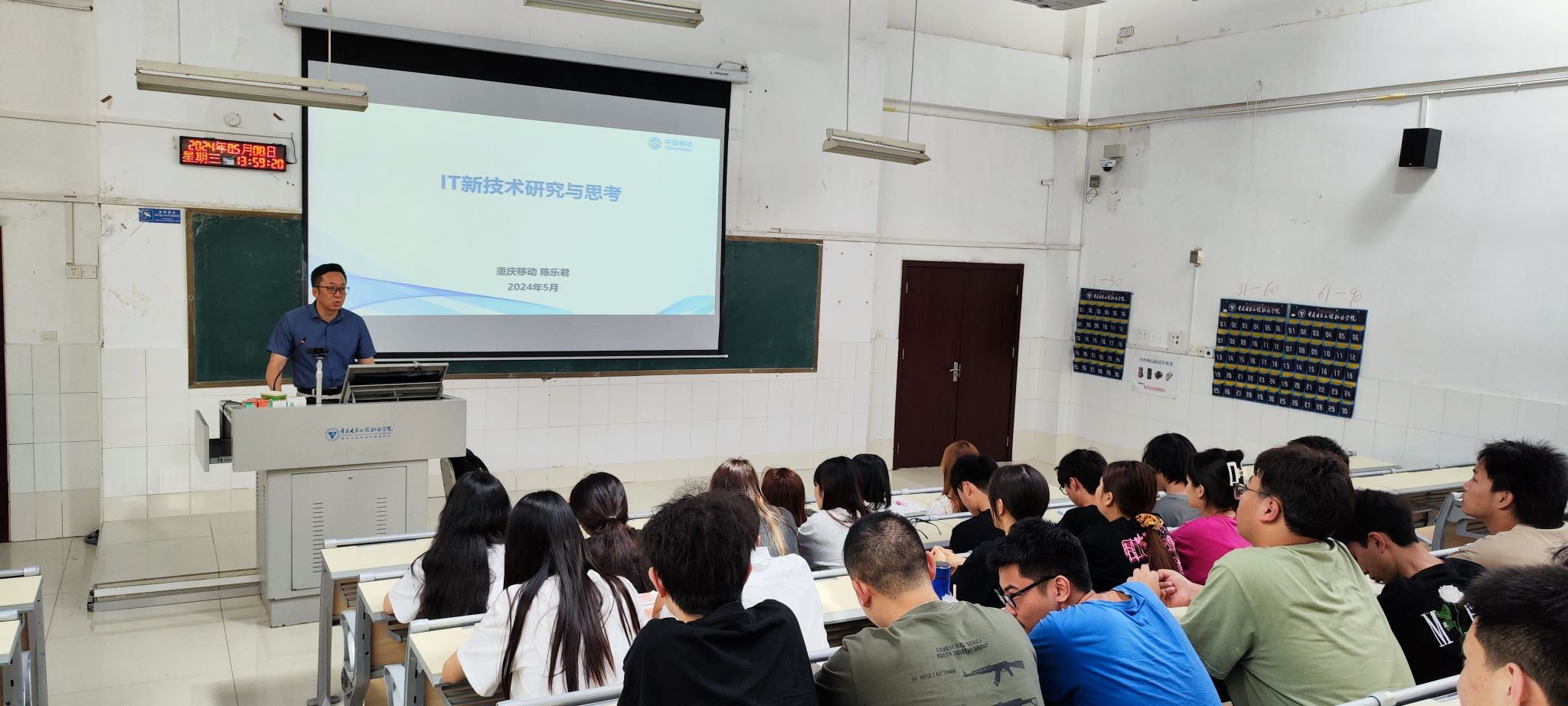 本次活动邀请到中国移动重庆公司高级工程师、重庆市劳动模范陈乐君同志做题为“IT新技术研究与思考”的报告。陈乐君同志是重庆市第五届劳动模范、“中国移动工匠”、中国移动“十百千”专家,2021年成立劳模工作室,曾获中国移动集团“集团双奖”二等奖1项、三等奖1项,一类成果2项。