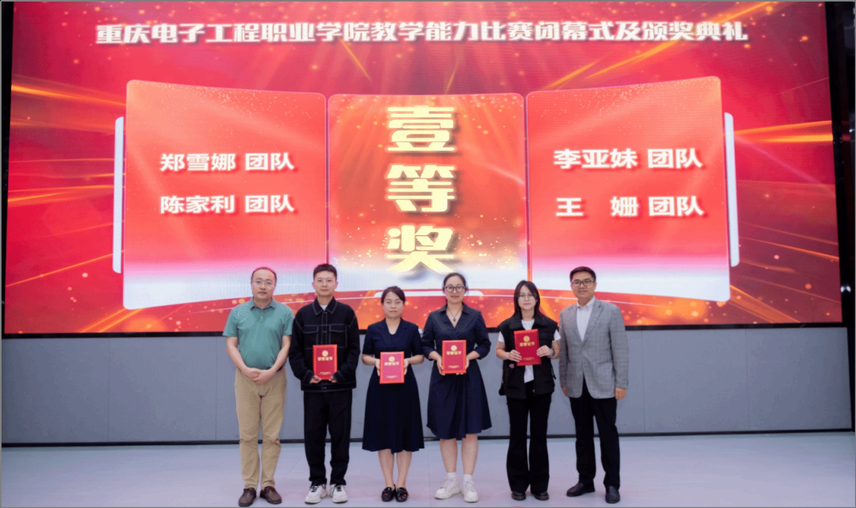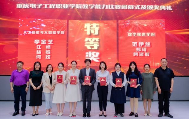 经过角逐,最终评选出特等奖2个、一等奖4个,二等奖7个,三等奖10个。人工智能与大数据学院李金芝团队和数字媒体学院范尹然团队获得特等奖,电子与物联网学院郑雪娜团队、通识教育与国际学院陈家利团队、智慧健康学院李亚妹团队和智能制造与汽车学院王姗团队获得一等奖,体育与国防教学部彭天娥团队、电子与物联网学院杨毓军团队、通识教育与国际学院罗宵月团队、财经管理学院姚奕团队、智能制造与汽车学院谭周琴团队、智慧健康学院胡文权团队、建筑与材料学院尹婵媛团队获得二等奖,其它10个团队获得三等奖。