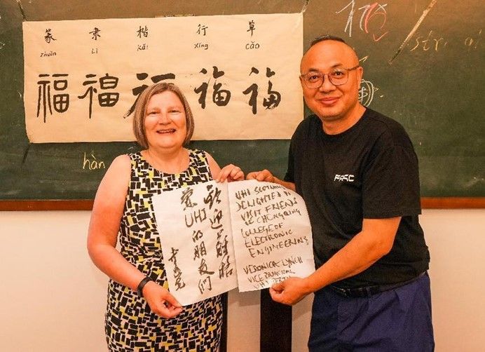 (幸昆仑副校长与Veronica Lynch副校长互赠书法作品)