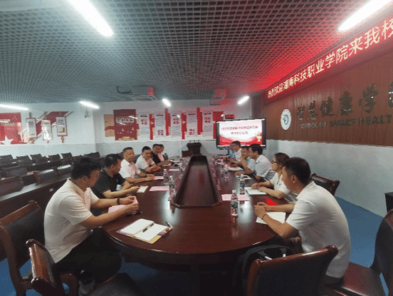 2024年6月12日,湖南科技职业学院党委书记杨翠明、副校长谭见君一行4人到访我校进行调研交流。学校党委书记孙卫平,党委副书记、校长聂强,党委委员、副校长刘洪光,党委学工部部长王永中,智慧健康学院院长谢光辉、副院长李卉以及智慧健康学院相关系主任参加交流。