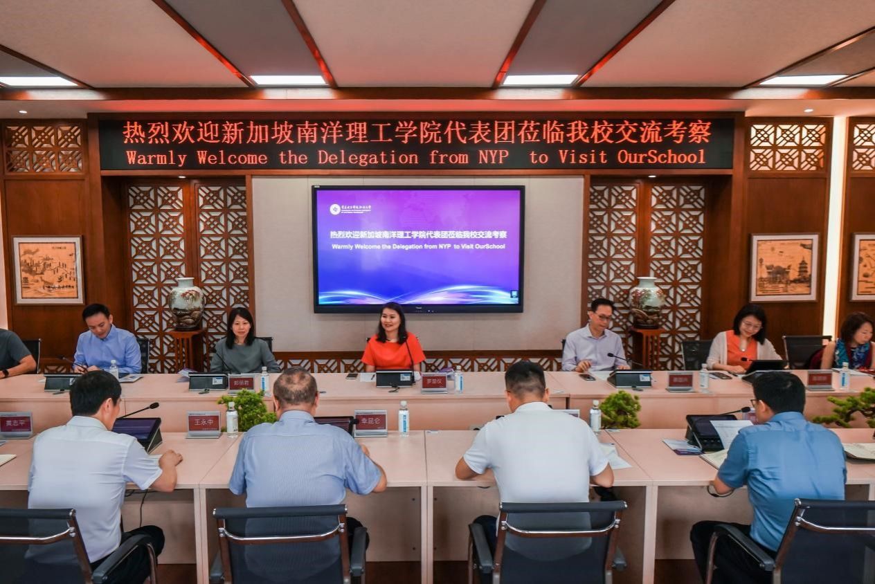 6月21日上午,新加坡南洋理工学院副校长罗楚仪,工商管理学院院长郑丽君,信息技术学院院长陈顺娇,工程学院经理符永维,工商管理学院副经理郭慧萍,学生关怀与辅导中心主任蔡国兴、高级经理蔡锦平一行来访我校并在2307丝路会议室开展交流会。我校副校长幸昆仑、党委学工部部长王永中、国际交流与合作发展处处长刘宏宇、财经管理学院院长黄志平、电子与物联网学院副院长熊德明、人工智能与大数据学院副书记张铁力、国际交流科科长覃乔亦、智能制造与汽车学院专任老师王姗、数字媒体学院辅导员于浩以及参加过新加坡南洋理工学院研修班的4名重电学生共同参加会议交流,会议由刘宏宇处长主持。