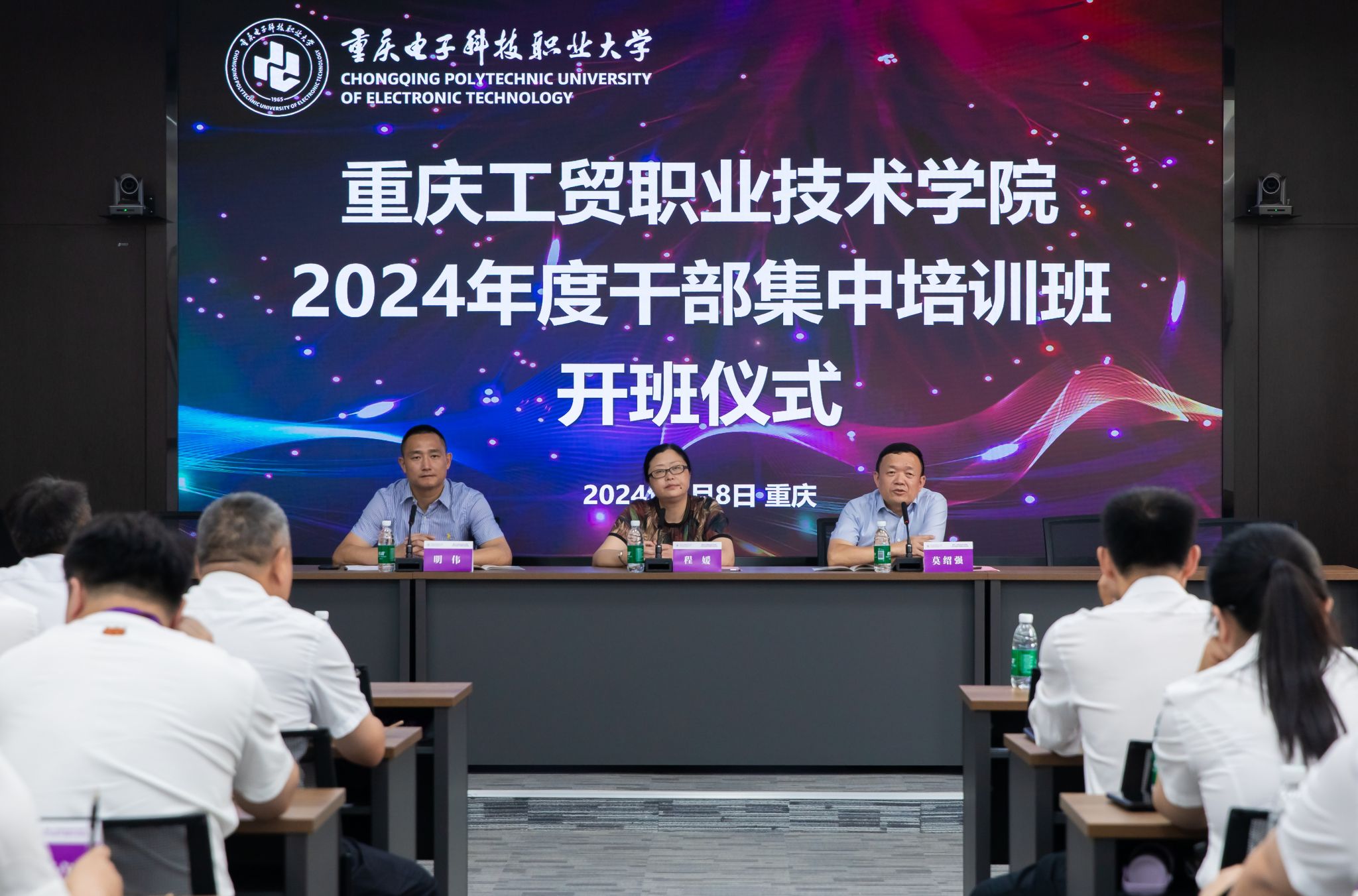 7月8日上午,重庆工贸职业技术学院2024年度干部集中培训班在重庆电子科技职业大学思政多功能厅顺利开班。参加开班式的有我校培训与继续教育学院党支部书记、院长、国培基地办主任莫绍强,培训与继续教育学院党政干部学习中心主任明伟,以及来自重庆工贸职业技术学院75名干部,开班式由明伟主持。