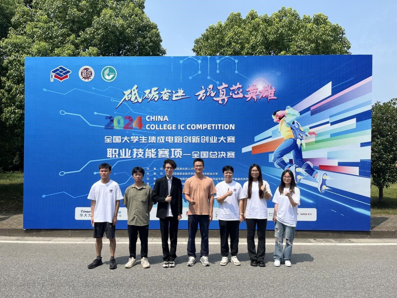 8月10日-12日,2024年全国大学生集成电路创新创业大赛(以下简称“集创赛”)职业技能赛项全国总决赛在江苏省无锡市、苏州市举行。我校电子与物联网学院7支队伍成功入围总决赛,获得一等奖2项,二等奖5项,获奖数量再创新高。