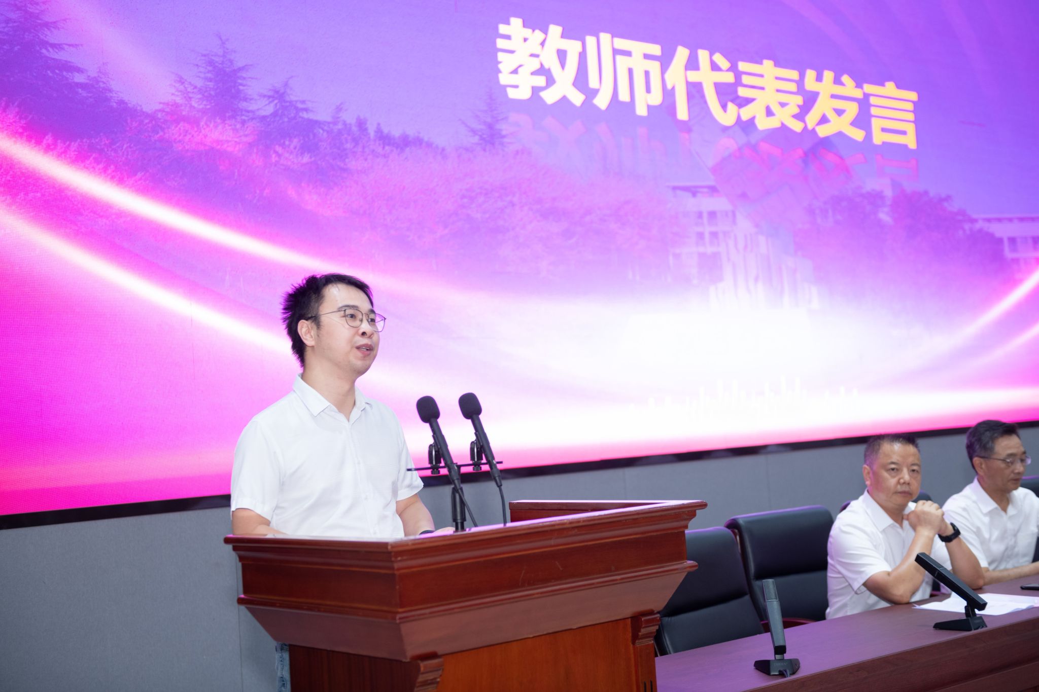 为庆祝第40个教师节,除庆祝表彰大会,学校还联合华龙网策划了“木铎金声”教师先进事迹宣传、组织开展最美教师评选及教师节“亮灯”等系列活动。