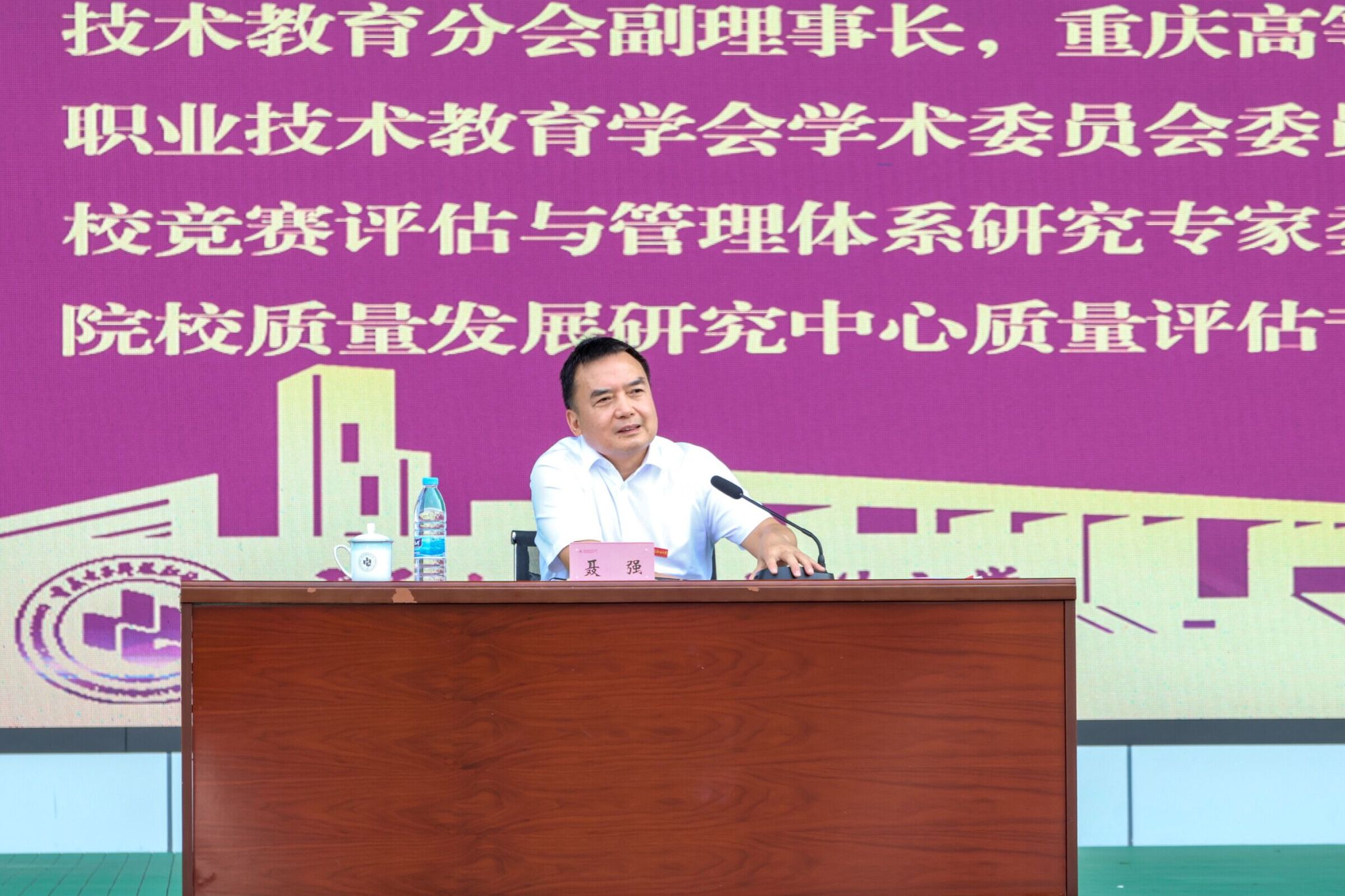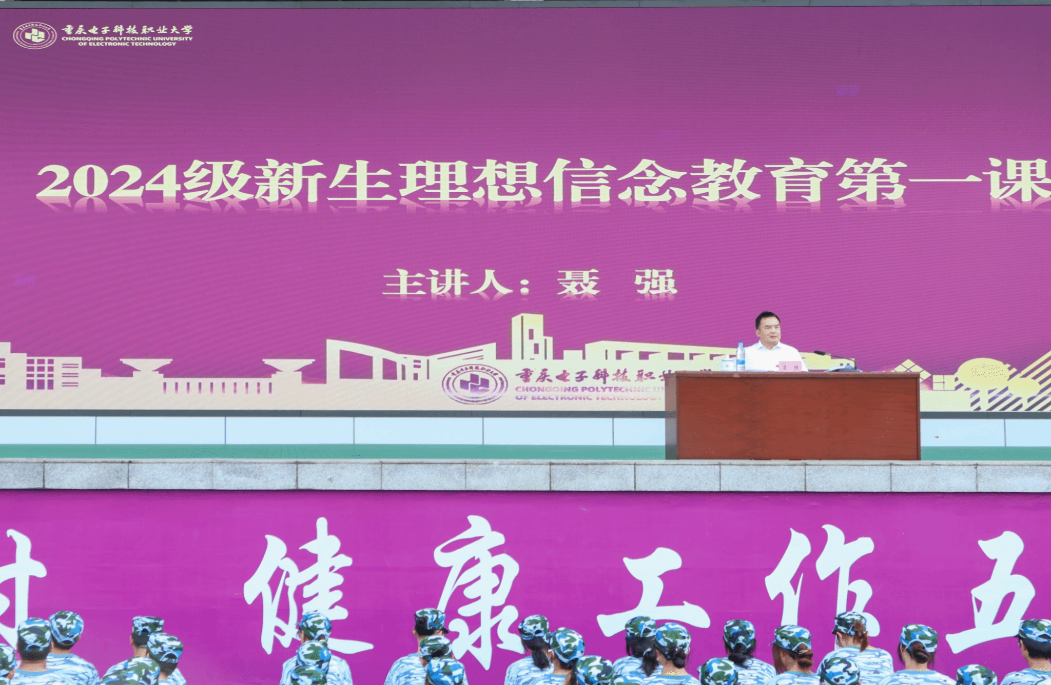 9月27日,重庆电子科技职业大学党委副书记、校长聂强教授以“鸿鹄应思搏云霄,振翅展飞千万里”为题,在奕晖运动场为2024级新生上理想信念教育第一课。