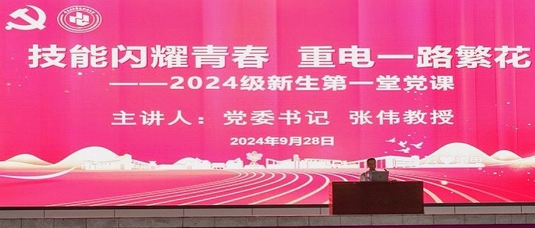 9月28日,学校党委书记张伟教授以“技能闪耀青春 重电一路繁花”为题,为2024级新生上开学第一堂党课。党委宣传部部长徐继燕主持开讲。