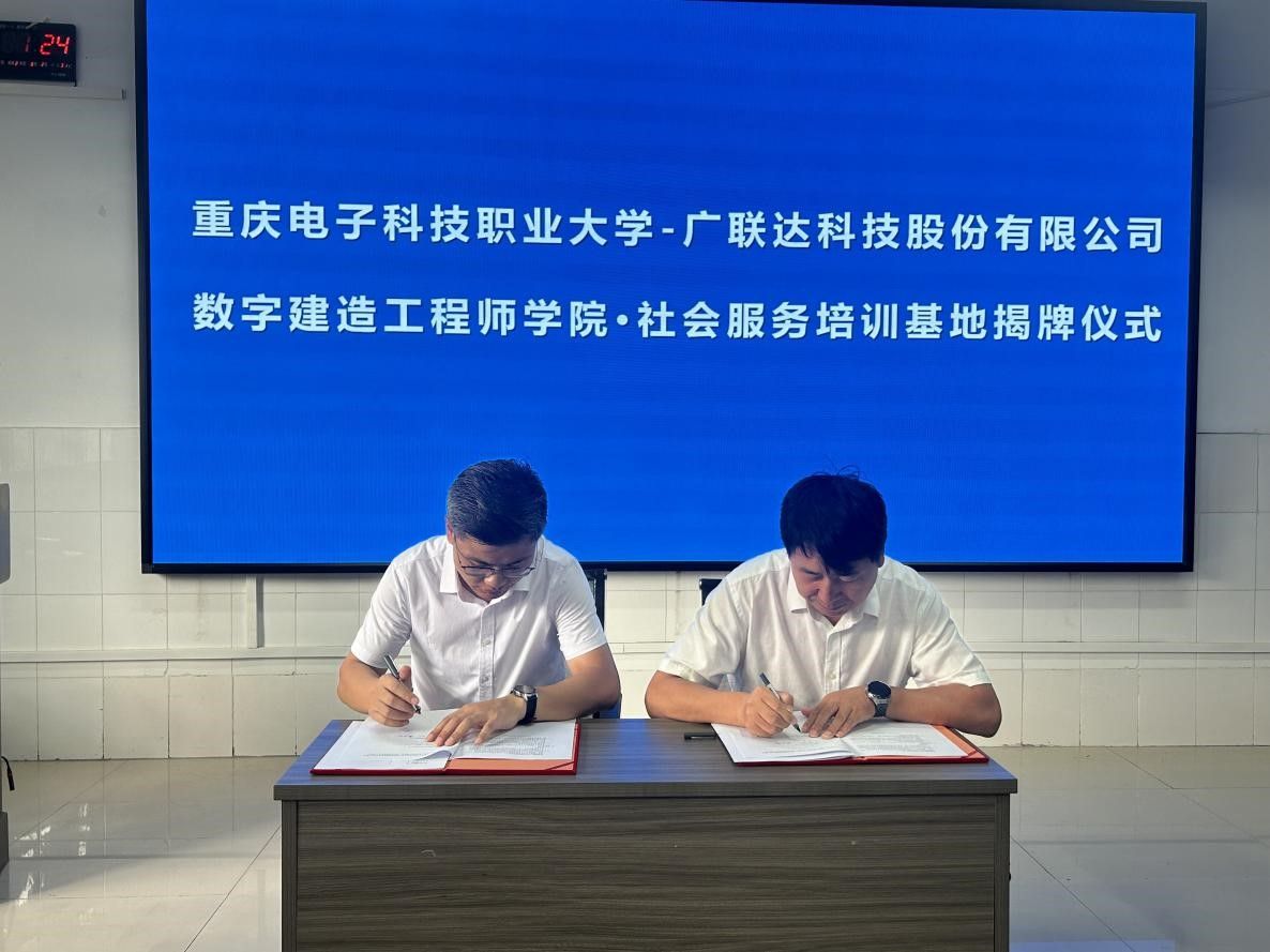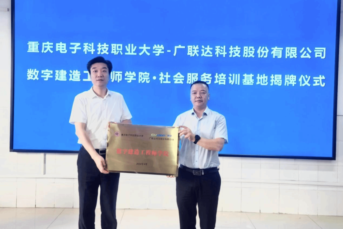 2024年9月24日下午,重庆电子科技职业大学建筑与材料学院与广联达科技股份有限公司在我校知行楼D207会议室,成功签署“重电---广联达数字建造工程师学院产教融合·校企合作框架协议”并成功举行了数字建造工程师学院揭牌仪式、广联达全国首家“社会培训服务基地”授牌仪式。此次合作旨在2022年共同成立“智能建造数字建造工程师学院”的基础上,再次共建“数字建造工程师学院”,共同探索进行“人才培养、实习实训、社会服务、科研创新”的全方位合作,共同培养高素质应用型、复合型、创新型人才。
