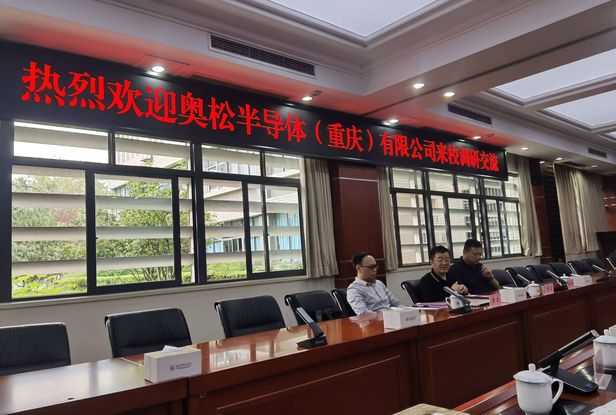 2024年10月25日下午,奥松半导体(重庆)有限公司张宾董事长一行来校调研并在博润厅进行了座谈交流。聂强校长、刘成俊副校长、科研与社会服务处、招生就业处、电子与物联网学院负责人及相关科研团队参加了座谈会。