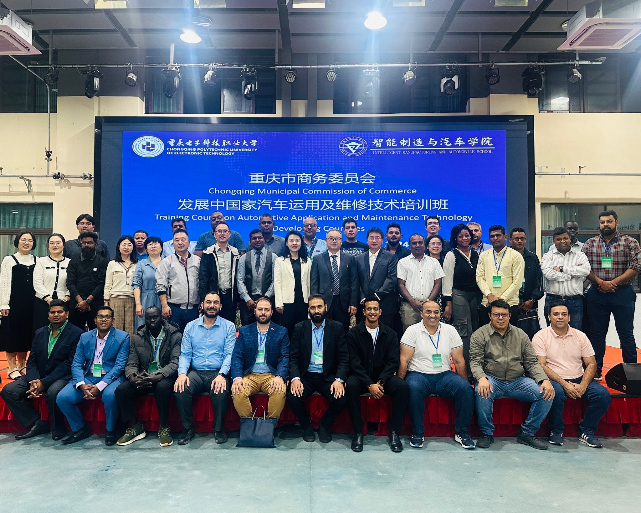 在致辞中,刘影代表学校对本次汽车运用及维修技术援外培训班的成功启动表示热烈祝贺,并向远道而来的25名学员——来自埃及、泰国、古巴等国的政府官员、行业专家及技术代表致以诚挚欢迎。她强调,此次培训旨在深化南南国际合作,向发展中国家传递重庆市在汽车、农机等行业整车及零部件制造、维修技术、技术创新及市场运营等方面的宝贵经验,为推动国际业务拓展贡献力量。