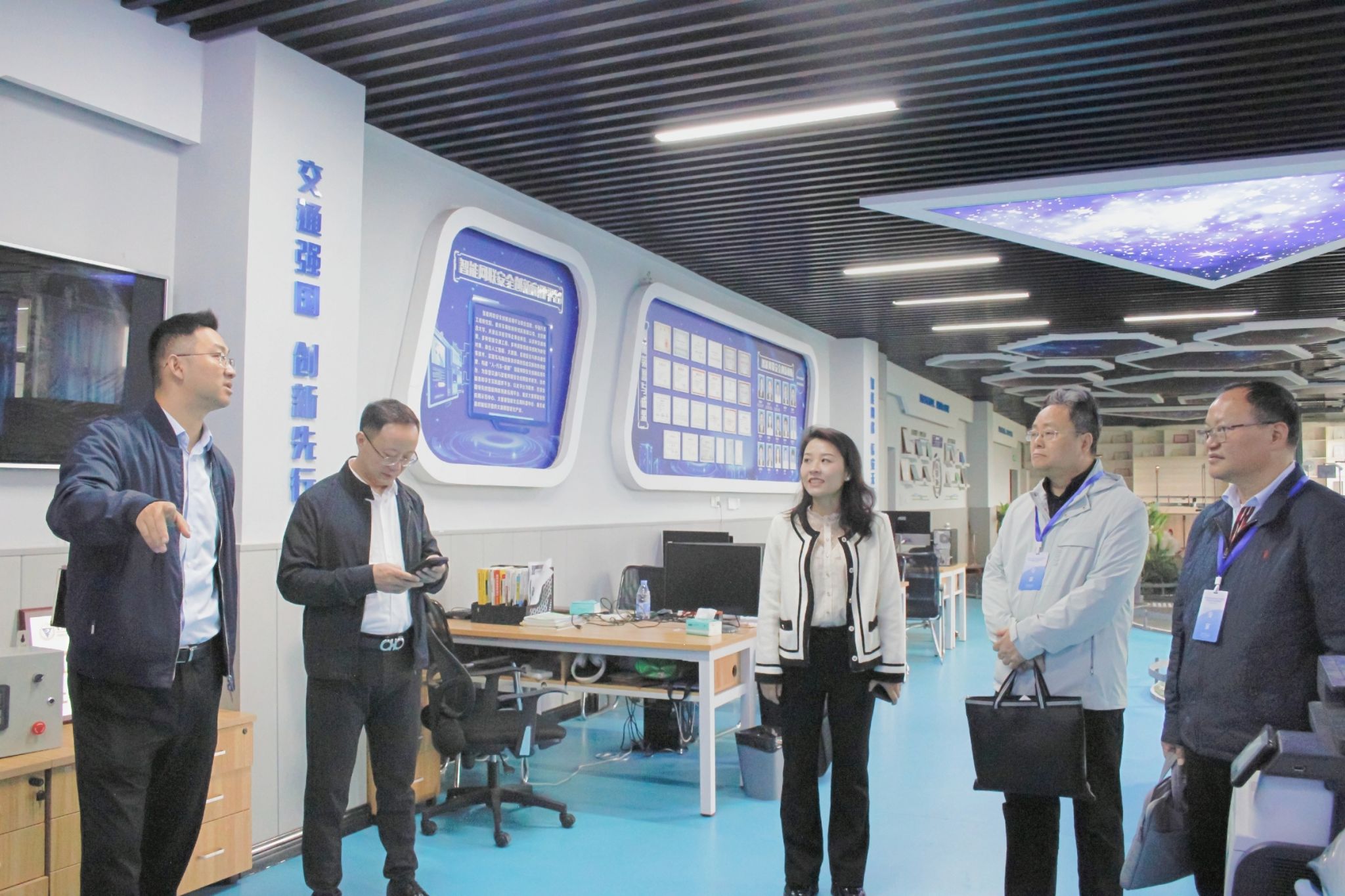 专家组一行在相关负责人陪同下实地参观考察了我校工匠工坊、技能大师工作室、技能大赛实训中心、国学馆等,随后双方在B408丝路会议室开展专项指导检查。
