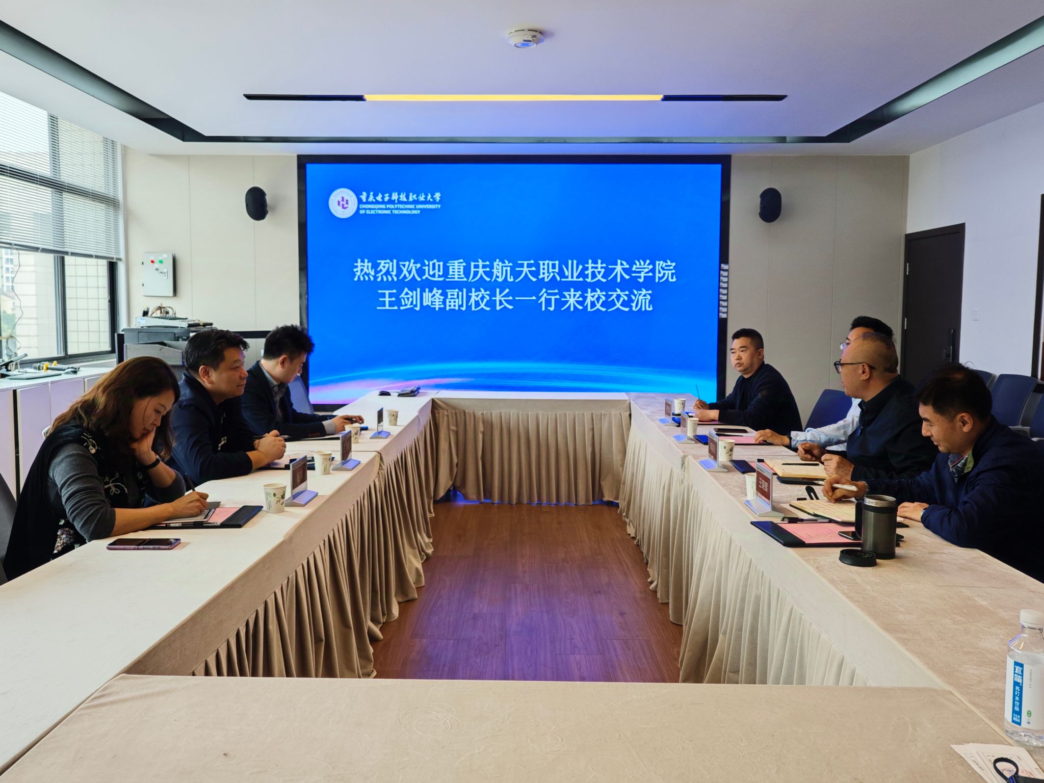 11月7日,重庆航天技职业技术学院副校长王剑锋、科研处处长刘自昆、产学合作处副处长杨洋、产学合作处干事徐瑞钟来访我校。我校副校长幸昆仑、国际交流与合作发展处处长刘宏宇、科研与社会服务处副处长王荣辉、国际交流与合作发展处合作发展科科长甘守武,在知行楼B508中非中心会议室共同参加座谈。