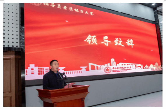 学校党委常委、副校长黄爱明出席并全程观摩比赛。重庆市教委宣教处处长李林齐,重庆科技大学学工部部长何亮,重庆医药高等专科学校学工部部长陈立书,重庆工程职业技术学院学工部副部长邬东洋,长江师范学院辅导员、全国高校辅导员年度人物、重庆市辅导员素质能力大赛特等奖获得者彭甜媛等受邀担任大赛评委。学校相关职能部门领导,各学院党总支书记、副书记、全体辅导员、学生代表共300余人一同观摩了此次比赛。