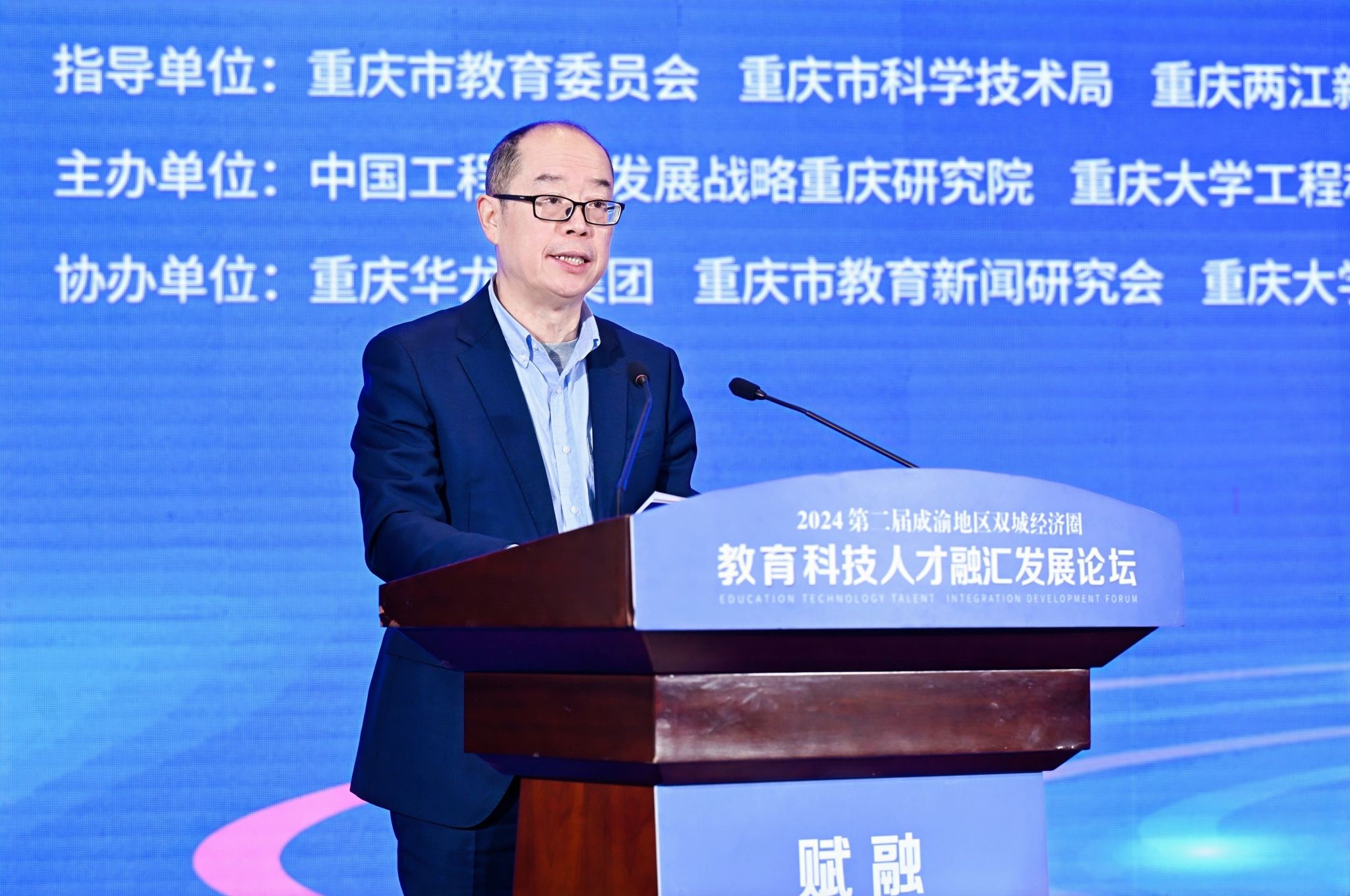 重庆市委教育工委书记、市教委主任刘宴兵在主旨演讲中表示,当前,重庆教育系统正锚定打造西部地区高质量发展增长极动力源的战略目标,坚持“川渝一盘棋”,启动实施《成渝地区双城经济圈教育协同发展行动计划》,配合推进《川渝科研机构协同创新行动方案》《成渝地区双城经济圈人才协同发展战略合作框架协议》,支持双城经济圈建设走深走实。刘宴兵从“推动数字时代双城经济圈建设走深走实,切实发挥教育科技人才一体发展的支撑作用”“推动数字时代双城经济圈建设走深走实,切实发挥高校在教育科技人才一体化发展中的引领作用”“推动数字时代双城经济圈建设走深走实,切实发挥教育科技人才自身数字化改革示范作用”三个方面进行了系统阐释和深入解读。