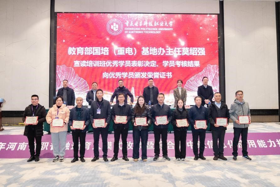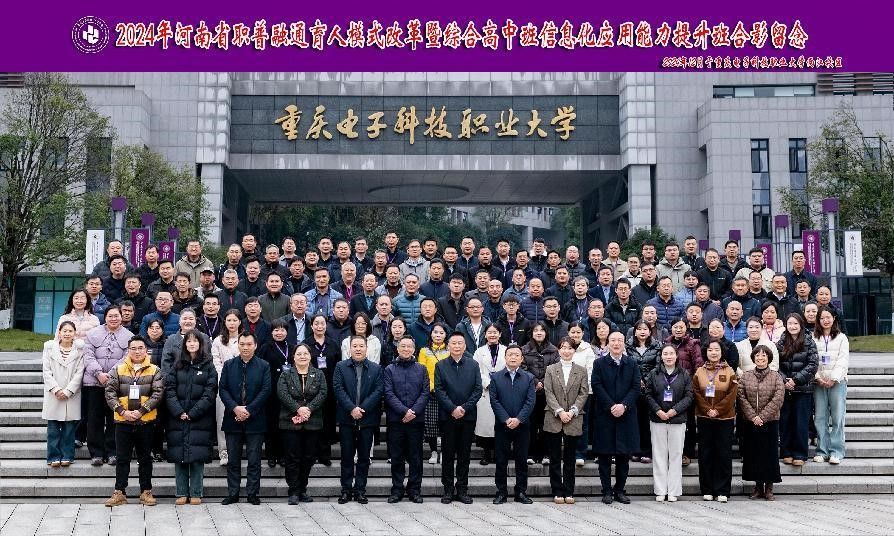为期5天的2024年河南省职普融通育人模式改革暨综合高中班信息化应用能力提升培训班于12月22日-26日在两江校区举行,河南省教育厅职业教育与成人教育处处长张家成、副处长刘娜;我校副校长刘成俊,人工智能与大数据学院院长武春岭,教育部国培(重电)基地办主任、职教师资培训学院书记兼院长莫绍强,基地办副主任张亚参加了25日举行的结业式。