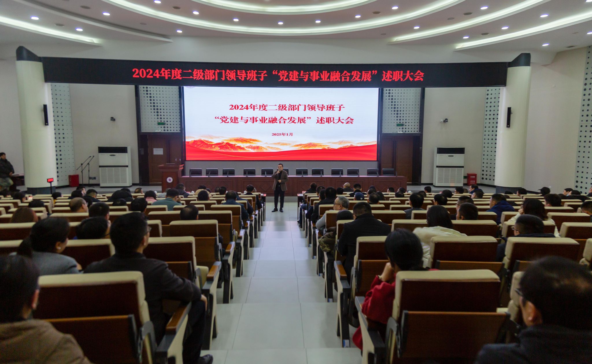 2025年1月2日下午,学校在博远厅召开2024年度二级部门领导班子“党建与事业融合发展”述职大会,全体校领导、处科级干部、职能部门和二级学院教职工代表共200余人参加大会。