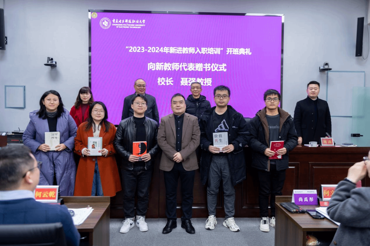 校长向新教师赠书是重电的一项传统。今天,聂强校长如期为新进教师代表送上他亲笔签名、精心推荐的书籍,他嘱咐每一位教师代表,要养成读书的良好习惯,做一名热爱阅读、知识广博的优秀教师,提高站位,切实担起教书育人重任。