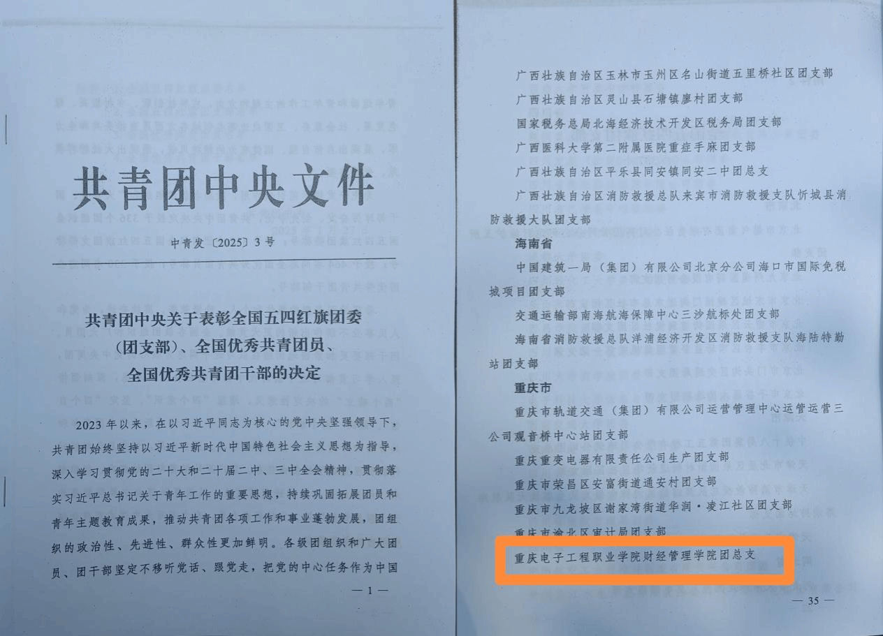 近日,共青团中央发布了“全国五四红旗团委(团支部)、全国优秀共青团员、全国优秀共青团干部”的表彰决定,我校财经管理学院团总支荣获“全国五四红旗团支部”称号。