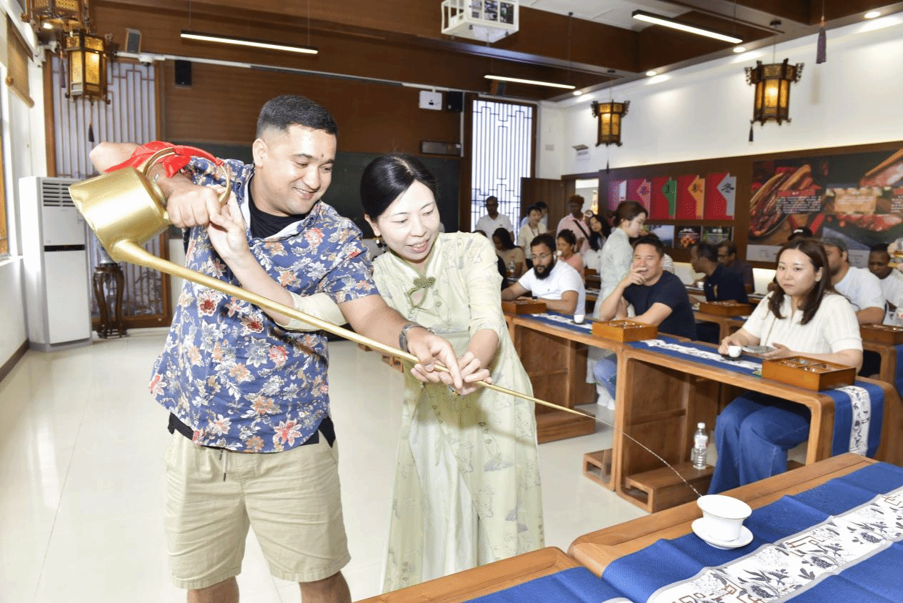 学员们参观了智能网联交通安全创新平台研究中心、网络安全协同创新中心、华为智慧创新中心、硅光子人才培养与技术创新中心等。在世界技能大赛光电基地,学员们纷纷与中国首位光电技术项目世赛金牌获得者李小松合影,聆听其分享从世界冠军到职教老师的成长经历。在国学馆,大家“沉浸式”体验了书法、茶道、古筝等非遗项目,深刻感受中国传统文化之美。
