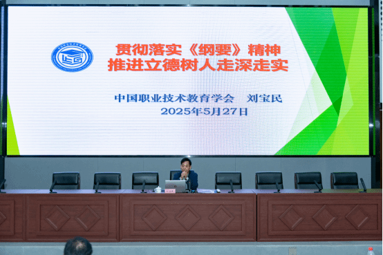 随后举行了职业院校“大思政课”建设研讨会。刘宝民副会长作题为《贯彻落实<纲要>精神 推进立德树人走深走实》的主旨报告,主要包含一是深刻理解教育强国建设的背景、基础和图景,二是《纲要》的主要内容,三是推进立德树人走深走实,四是关注校园安全,五是培养担当民族复兴大任的时代新人思考。