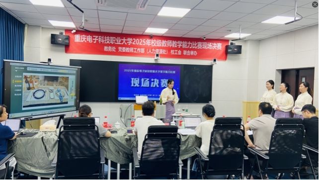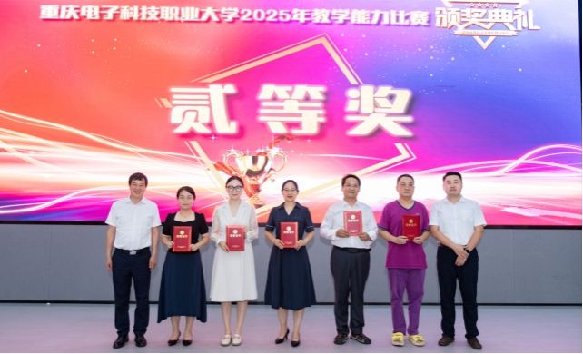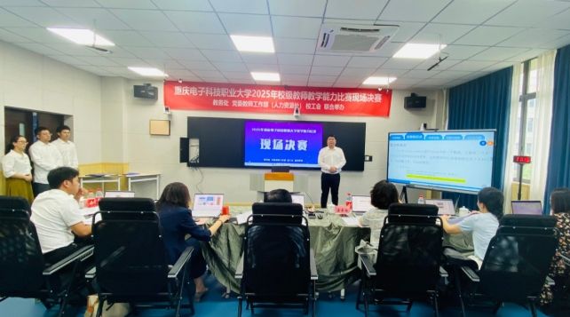 2025年6月20日我校举行了教师教学能力现场决赛。本次比赛由教务处、党委教师工作部(人力资源处)、校工会联合举办。学校副校长谢光辉、人力资源处处长周鑫、校工会负责人王永中、发展规划与质量管理中心副主任代才莉、教务处副处长陈进,以及18支决赛团队、教师代表出席了闭幕式。本次比赛邀请了教学能力比赛国赛评委、重庆市青教赛评委、职业教育研究专家、获得国家级教学能力比赛奖项的优秀教师、普通本科高校专家、企业金牌讲师等代表共10人担任评委。