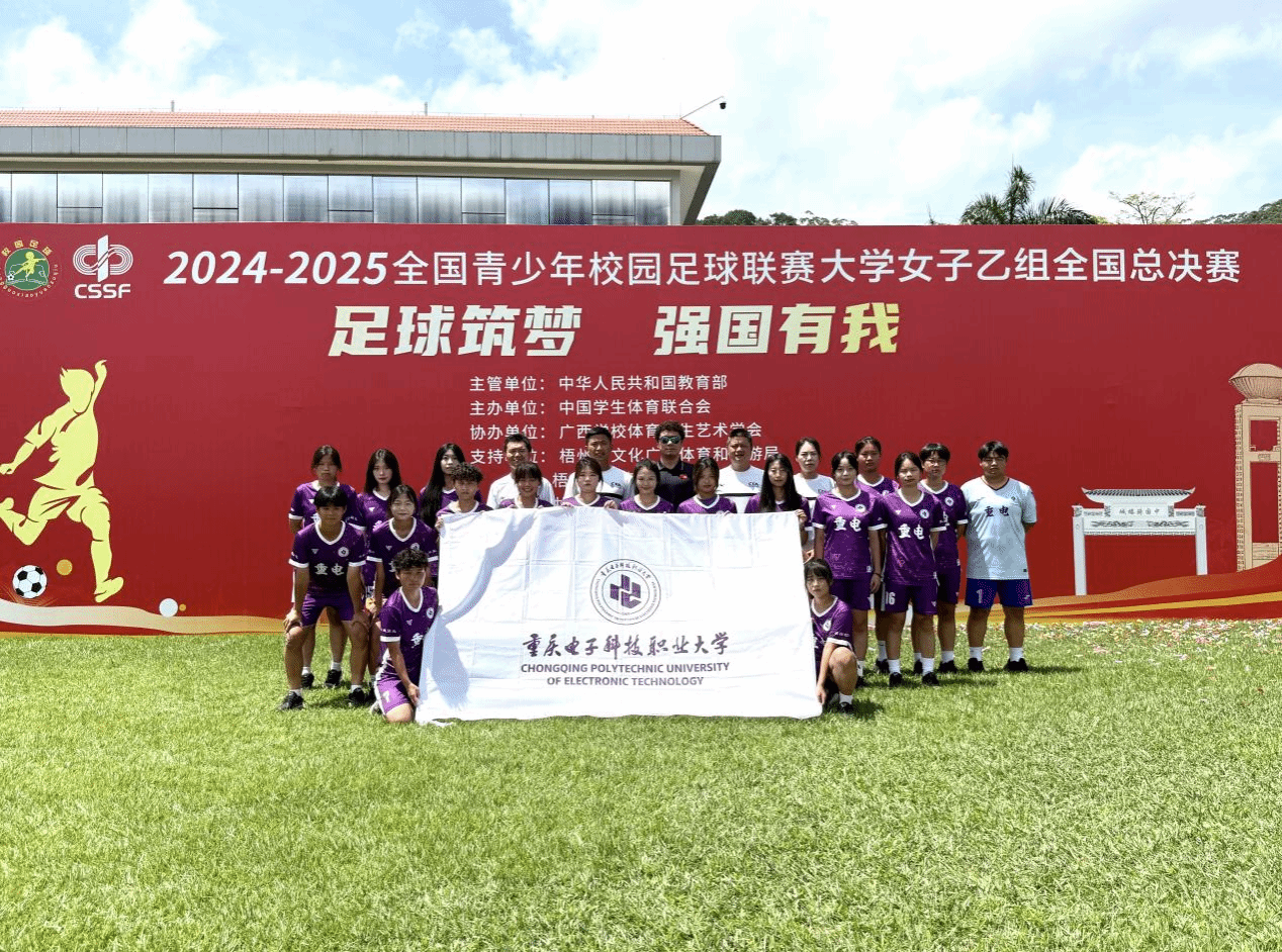 2025年6月22日至7月3日,历时12天的2025年全国青少年校园足球联赛大学女子乙组全国总决赛在广西梧州的国家体育训练基地落下帷幕。在学校领导和部门领导的关心和支持下,我校女子足球代表队由体育与国防教学部老师蒋艺、韦泽泽带队参赛,先是在小组赛中3场全胜以小组第一挺进16强,然后是战胜清华大学,跻身全国8强,再是8进4战胜广西队,成功闯入全国四强,最后不敌内蒙古师范大学和西南医科大学,最终以7战5胜2负进17球失3球的成绩获得全国第四名的成绩。