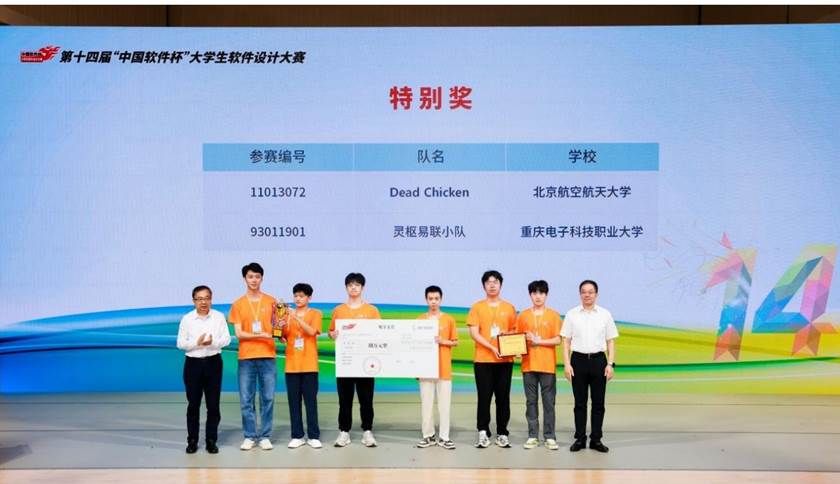 2025年8月28日,第十四届“中国软件杯”大学生软件设计大赛总决赛在苏州大学落下帷幕,经过紧张激烈的多轮比拼,重庆电子科技职业大学通信工程学院代表队从全国31个省市、800余所高校、5604支赛队中脱颖而出,取得2项全国奖项,其中参赛队伍“灵枢易联小队”与北京航空航天大学代表队共同被大赛评为全国仅有两项的最高荣誉“特别奖”,授予“中国软件杯”奖杯,取得了重庆市代表队历届最高成绩。