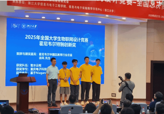 2025年全国大学生物联网大赛全国31个省市,800余所高校,3200多支参赛队,鏖战近5个月,国赛剩下200多支队。参赛队与本科生等队伍进行同赛道竞争,获得唯一霍尼韦尔企业特别创新奖,颁奖盛典上企业从作品解决实际工程问题、方案创新型、全面性以及经济价值给予了高度评价和认可。