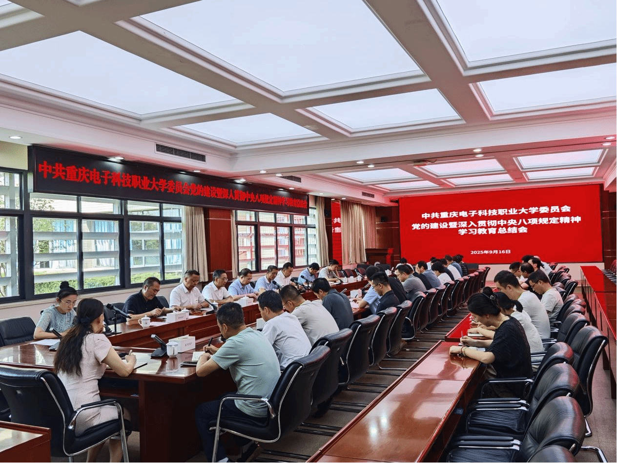 9月16日,中共重庆电子科技职业大学委员会在博润厅召开党的建设暨深入贯彻中央八项规定精神学习教育总结会。党委常委、校领导、党委委员、纪委委员、各二级党组织书记、职能部门主要负责人及学习教育专班成员参加会议。