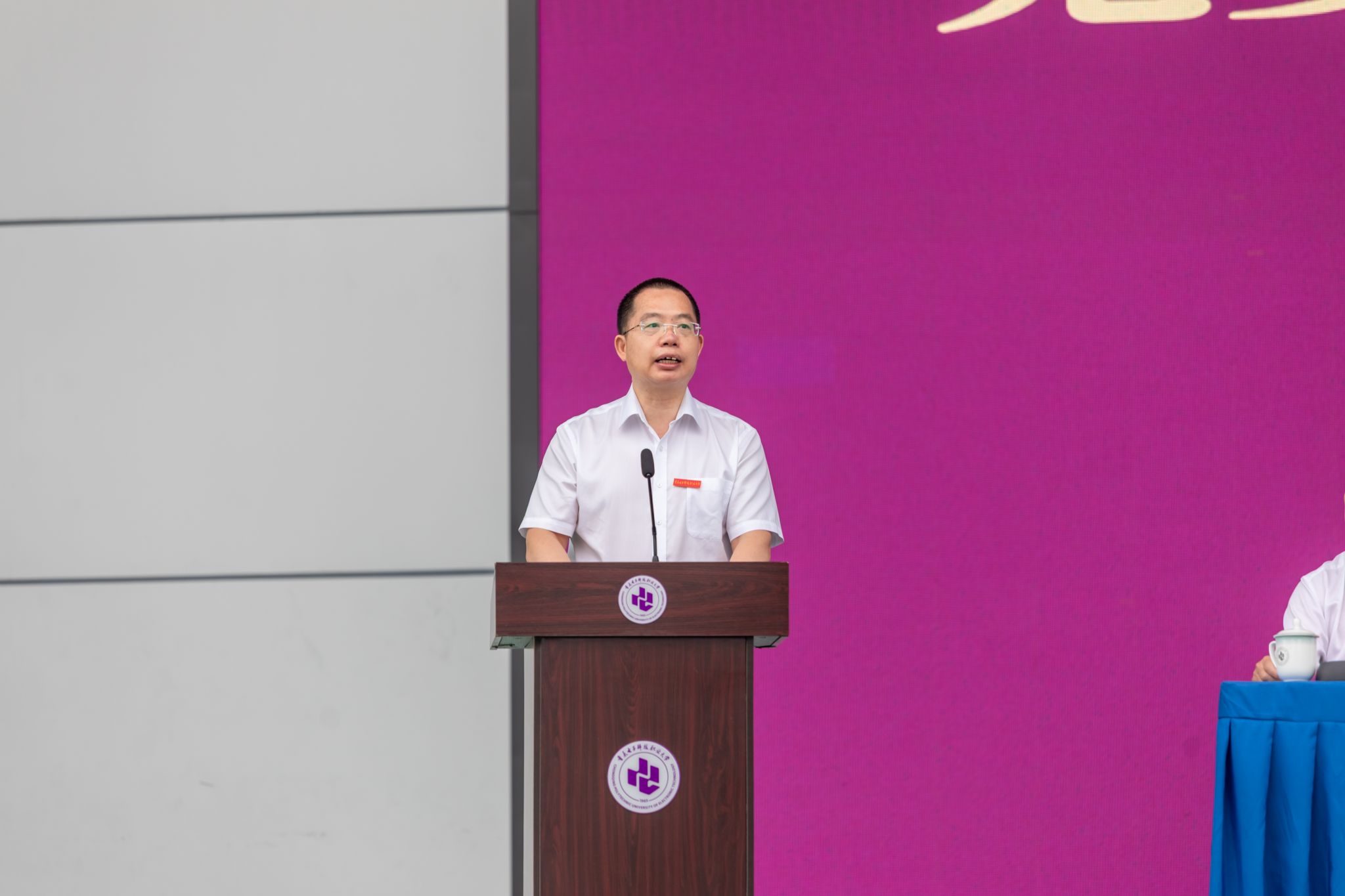 教师代表通信工程学院郭俊杰老师以饱满的热情,分享了带领学生团队勇夺“中国软件杯”全国总决赛特别奖、创造重庆高校新纪录的拼搏故事,并讲述了优秀毕业生罗刚跻身行业顶尖企业的成长经历。他勉励新生以勤勉为基、以匠心为魂、以梦想为帆,在重电这片沃土中书写属于自己的崭新篇章,以青春之力共筑“咱们”的荣耀。