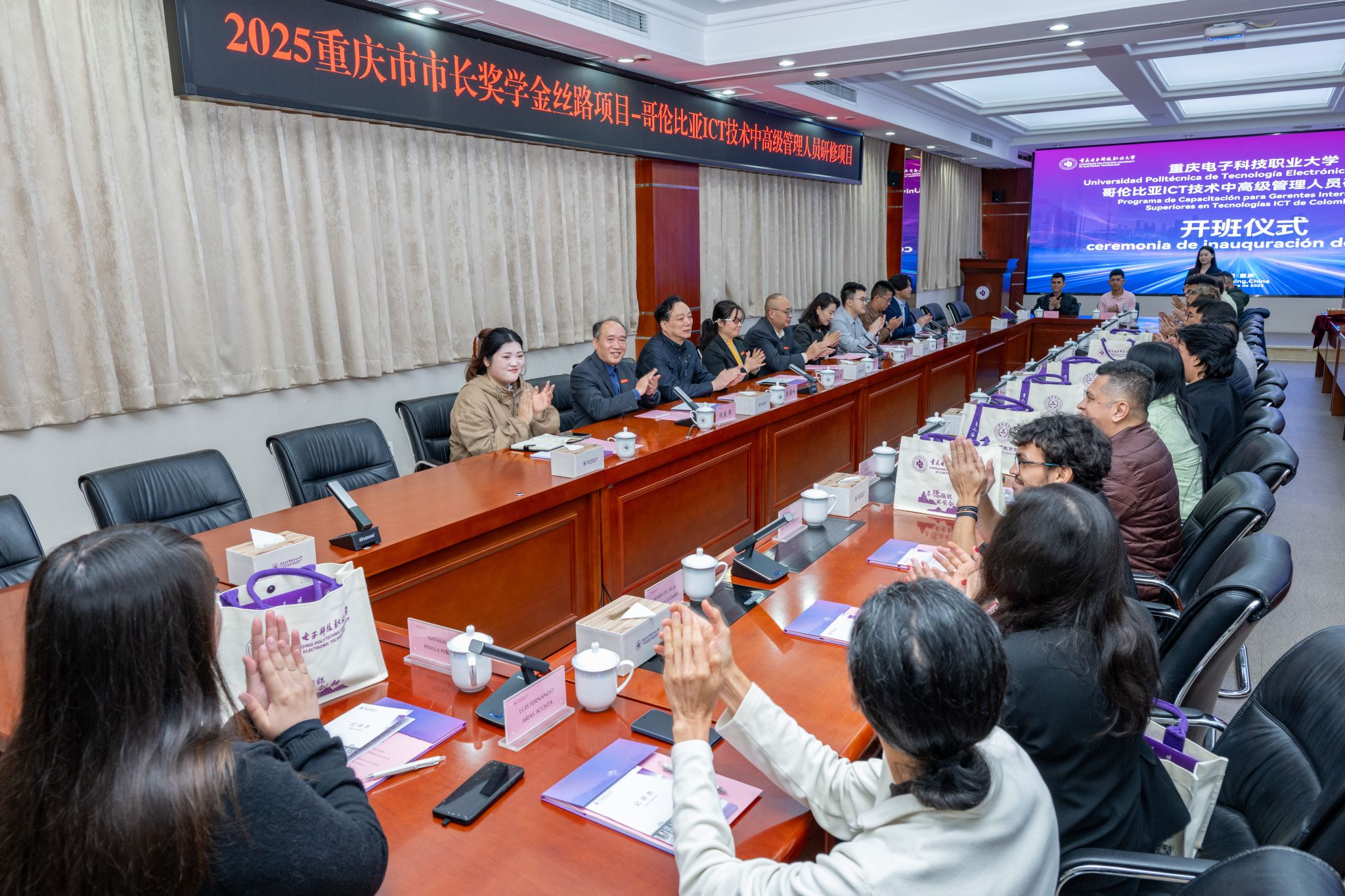 2025年11月6日上午,2025年哥伦比亚ICT技术中高级管理人员研修项目开班仪式在博润厅会议室举行。学校党委常委、副校长幸昆仑,通信工程学院党总支书记曾晓宏,人工智能与大数据学院院长武春岭,通信工程学院副院长刘良华,以及相关职能部门的负责人、教师代表,与哥伦比亚国家培训服务中心20名学员共同参加。开班仪式由国际合作与交流处处长刘影主持。