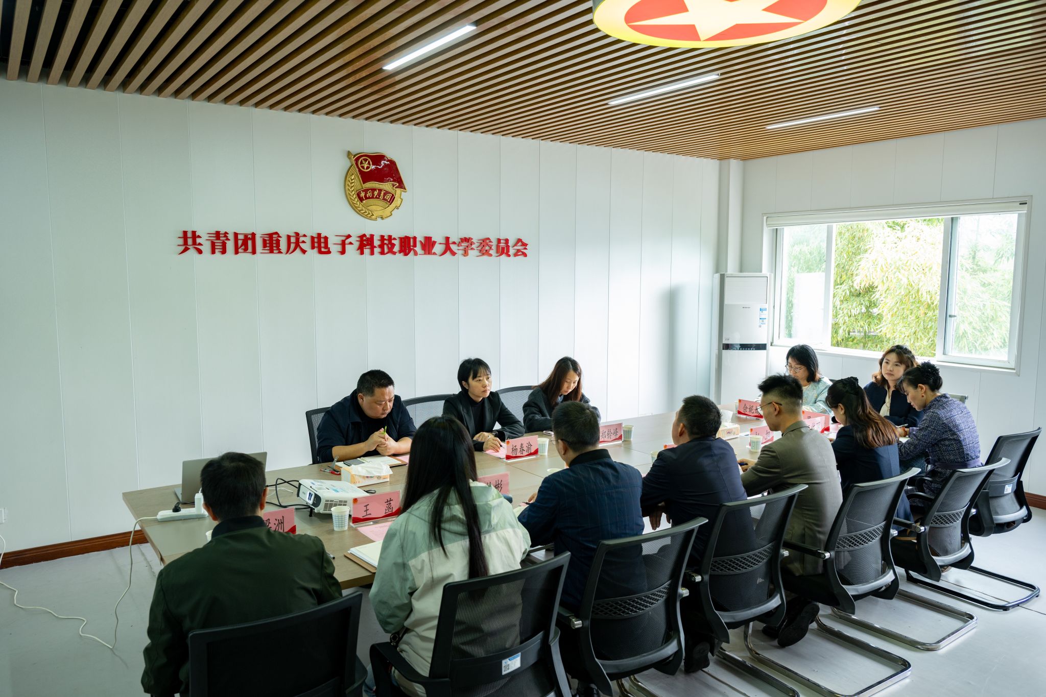11月13日,共青团重庆市委副书记杨春渝,重庆青年报社社长、市青少年新媒体中心主任杨万洋,市青少年新媒体中心副主任郑铃峰一行来校调研指导共青团工作。校党委常委、副校长黄爱明,团委书记钟佐彬,数字经济与管理学院党总支书记蒋斌、副书记廖坤科,电子与物联网学院党总支副书记毛弋,各二级学院团总支书记及学生代表参与调研。