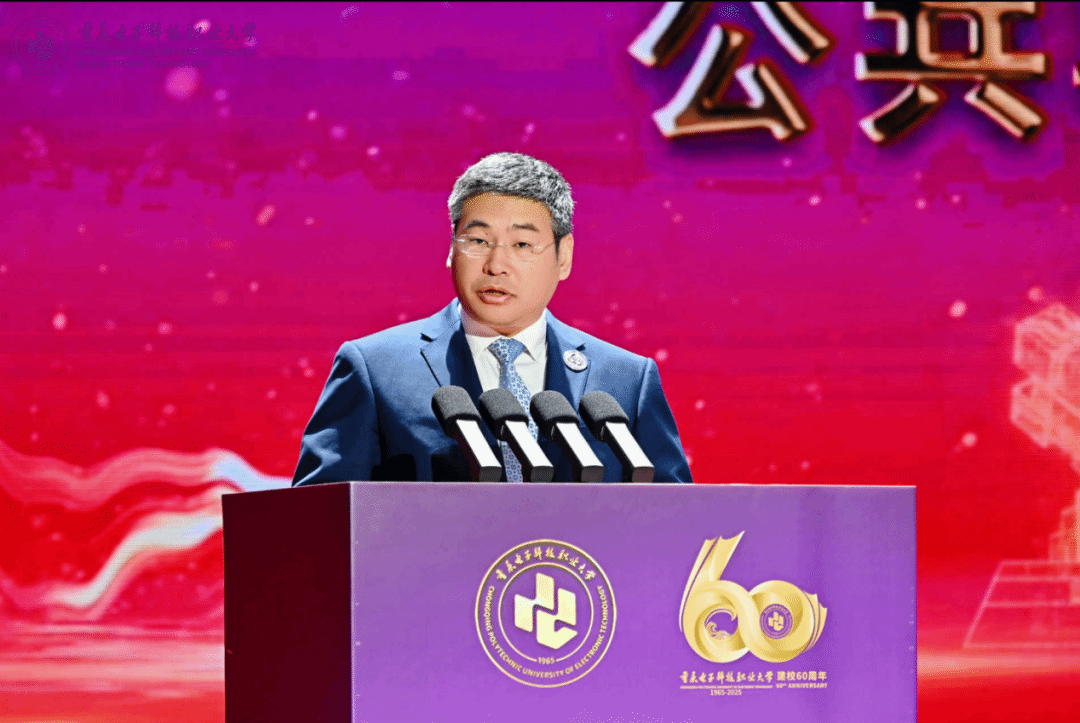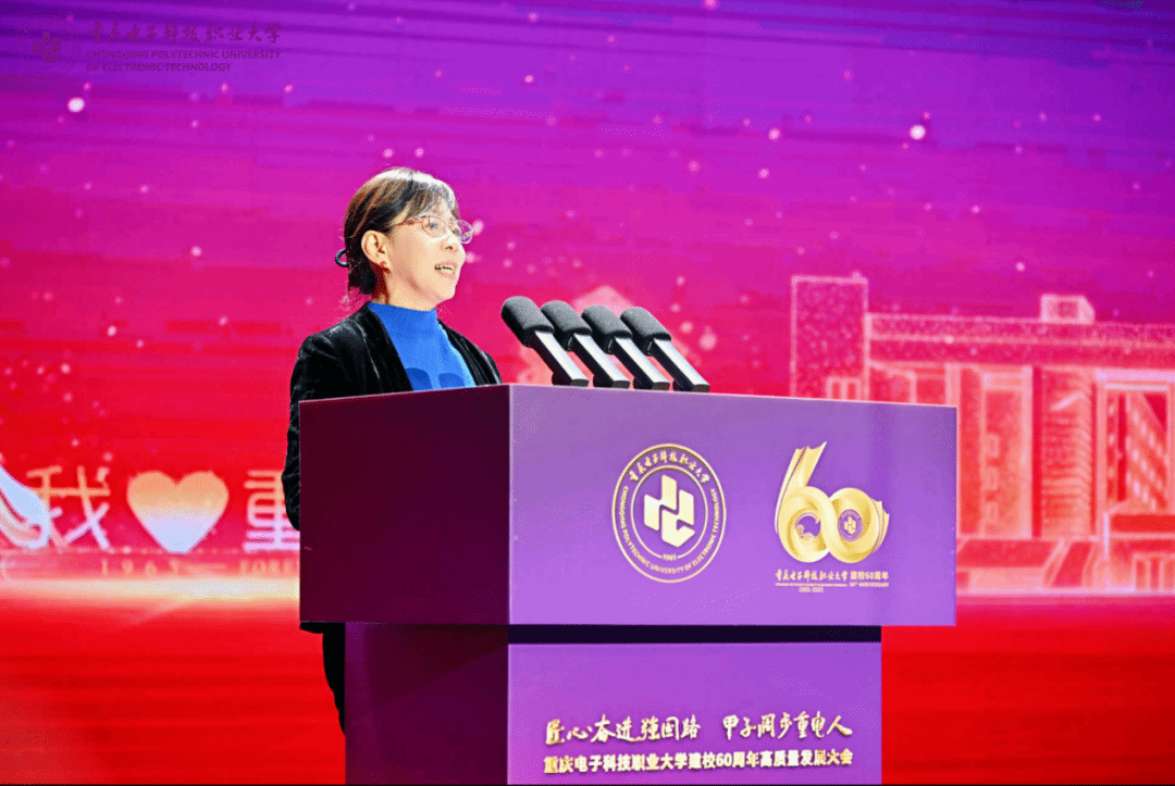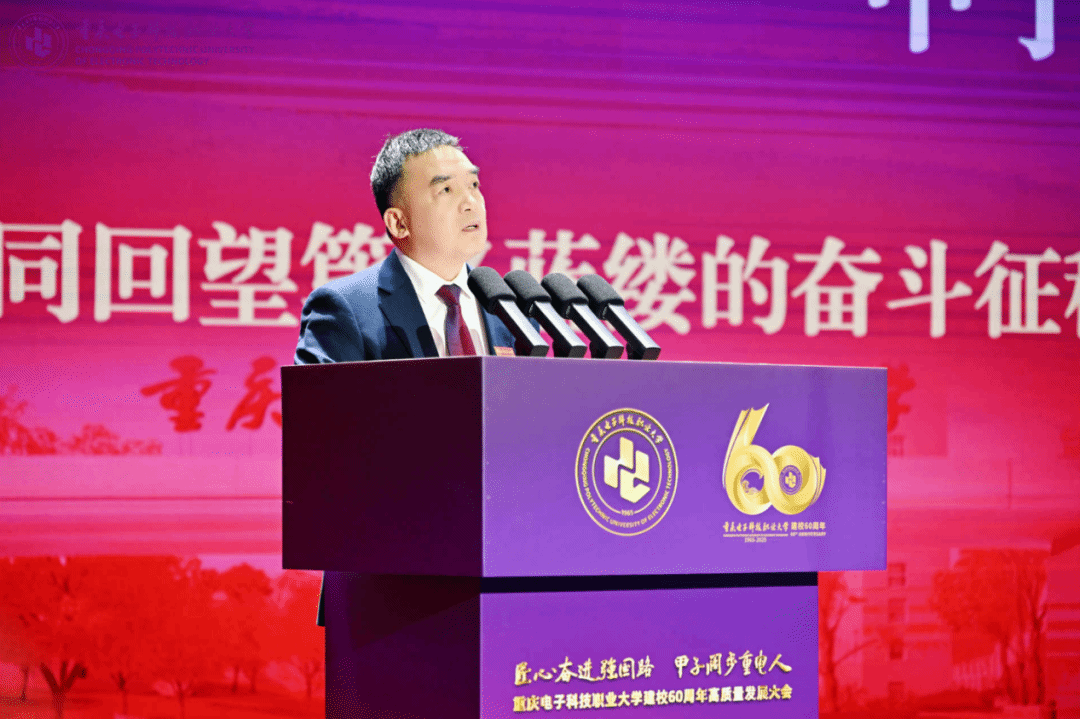 校党委书记张伟表示,六秩风华,薪火相传;匠心不辍,踔厉奋发。从1965年五机部下达正式成立川南工业管理学校,到1977年掮领使命成立重庆市无线电技工学校至今,重庆电子科技职业大学始终与国家共命运、与时代相偕行,先后为党和国家培养了一大批高素质技术技能人才,为国家和区域经济社会发展做出了积极贡献。回望峥嵘岁月,学校始终与国运同频、与时代共振。为此,重电举行建校60周年高质量发展大会,共话桑梓、共商发展、共创未来,在服务教育强国、成渝地区双城经济圈建设中书写重电新的篇章!