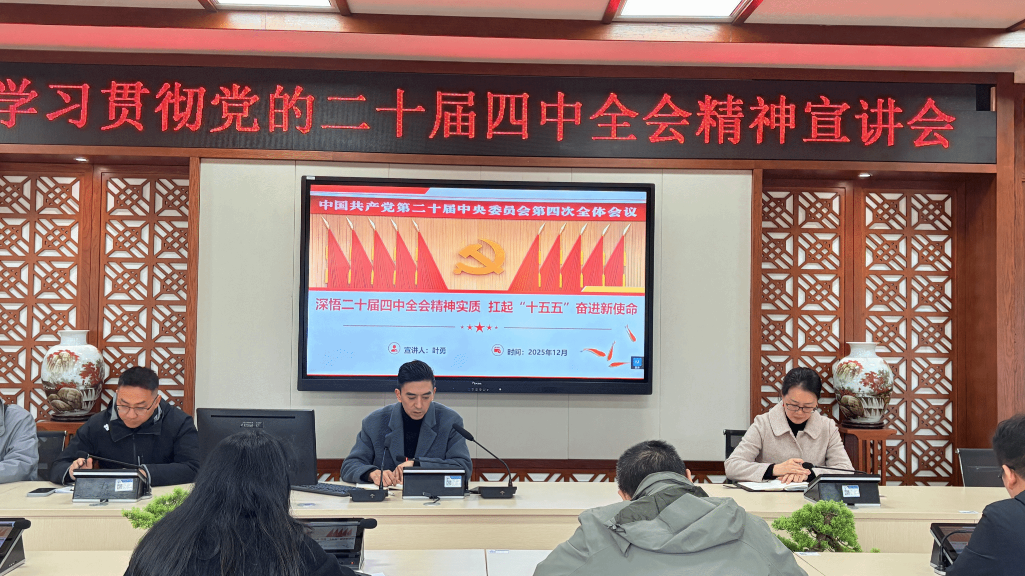 2025年12月4日,为深入贯彻落实党的二十届四中全会精神,学校副校长叶勇围绕全会精神的核心要义与“十五五”时期发展使命,为通识学院党总支、产教融合中心党支部讲授了专题党课。党课由通识学院党总支书记、院长张华敏主持,通识学院及产教融合中心党支部全体党员参加了学习。