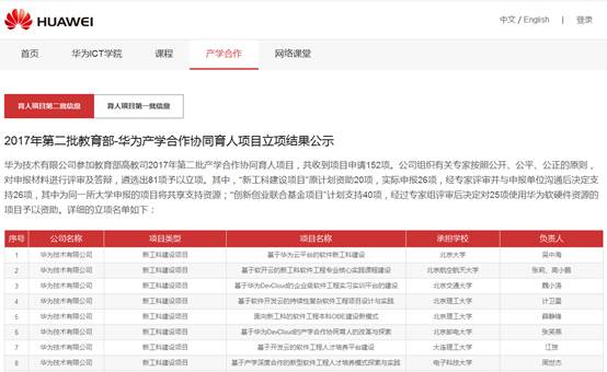 根据《教育部高等教育司关于公布有关企业支持的产学合作协同育人项目申报指南》要求,华为技术有限公司组织申报了“新工科建设”、“创新创业联合基金”以及“教学内容和课程体系改革”三个类别的立项;其中,仅有“教学内容和课程体系改革”向高职院校开放,享有与本科院校同等条件申报资格,并限定立项10个项目。