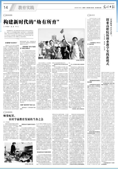 2018年1月4日,《光明日报》第14版《教育实践》,全文刊登了我校校长聂强教授、招生就业处唐艳辉处长、图书馆仇大勇馆长撰写的学术文章——《探索高职院校创业教学实践新模式》一文。