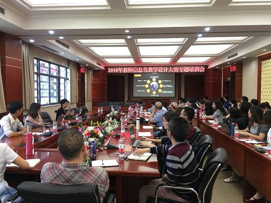 培训会上,于丽老师首先分析了教育信息化带来的挑战与机遇,提出“信息技术不可能代替教师,但教师要学习如何用恰到好处的信息技术为教学服务,如何使用技术比技术本身更为重要”的理念。其次,于老师从研究大赛背景和资料、比赛需要的支持、如何选题、信息化教学设计、说课展示共五个方面分享信息化教学设计经验。尤其强调教学设计的重要性,要合理处理课前与课中的关系、学生为主体和教师为主导的关系、教学和信息化的主线关系,并辅之以实际案例说明,凸显了教学设计以及实际课堂教学从语言到行为的细节处理的重要性。