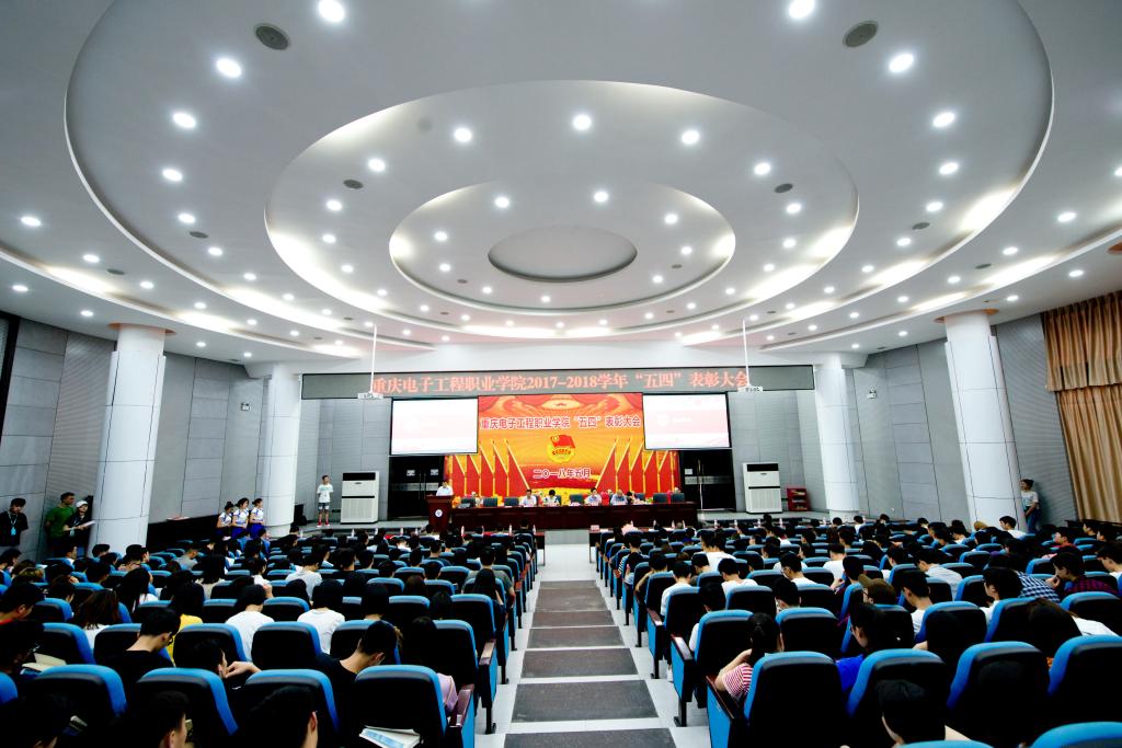 2018年5月4日下午,重庆电子工程职业学院2018年五四表彰大会在博远厅举行。出席大会的领导有学校校长聂强;学校副校长王平;校纪委书记陈丽;学校副校长幸昆仑;学校副校长刘成俊;学校副校长冉学农以及学校相关职能部门和各二级学院的领导。本次大会由校团委书记钟佐彬主持。