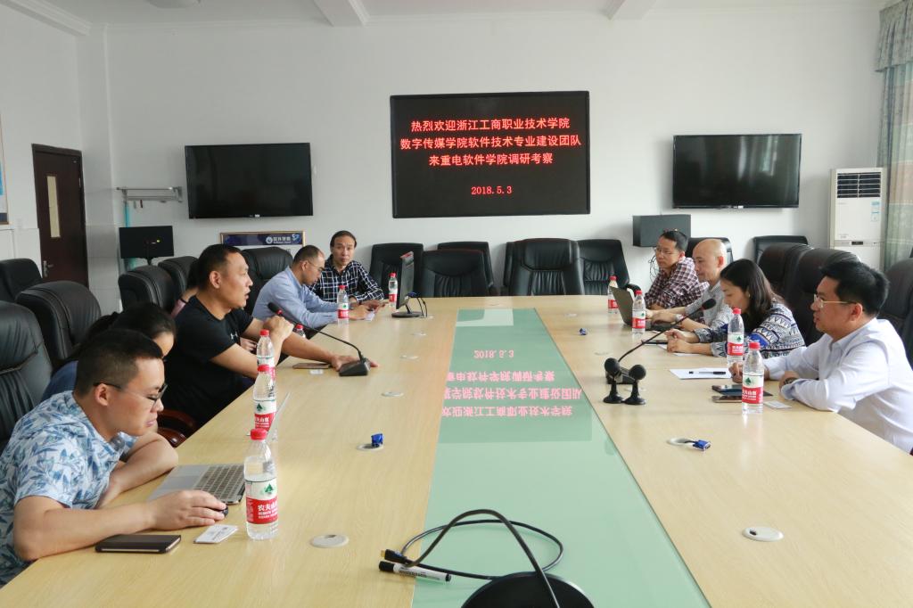 2018年5月3日上午,浙江工商职业技术学院数字传媒学院软件技术专业建设团队韦存存老师等一行四人到我校交流考察,软件学院党总支书记王文携部分专业教师出席了座谈会。