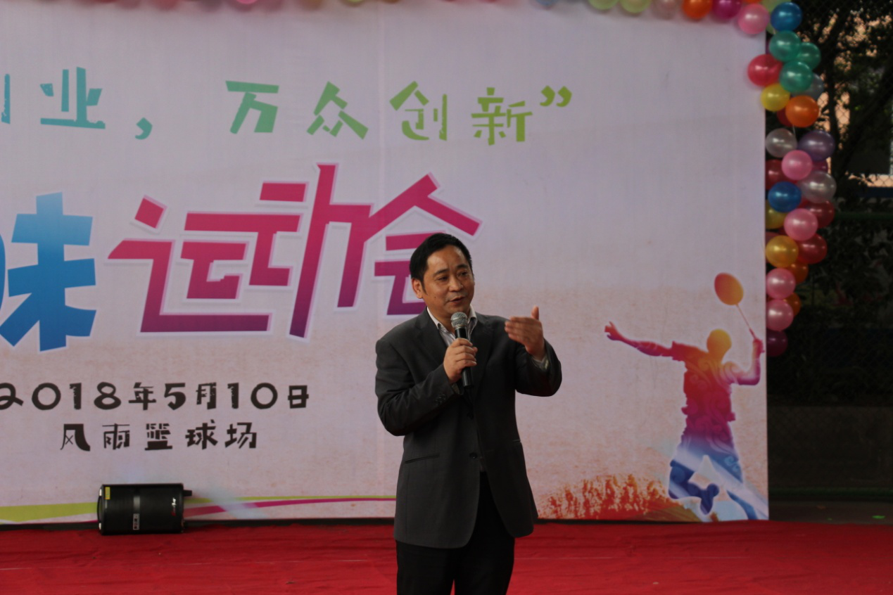 在一段充满青春活力的啦啦操中,本次趣味运动会拉开了帷幕。运动会正式开始前黄正伟书记为同学们提到:我们十分重视同学们的身心健康,希望通过开展丰富多彩,积极向上的活动,使大家学习之余,强身健体,提升自身的综合素质,始终保持旺盛的学习热情和良好的身体状况,并祝愿本次趣味运动会取得圆满成功!