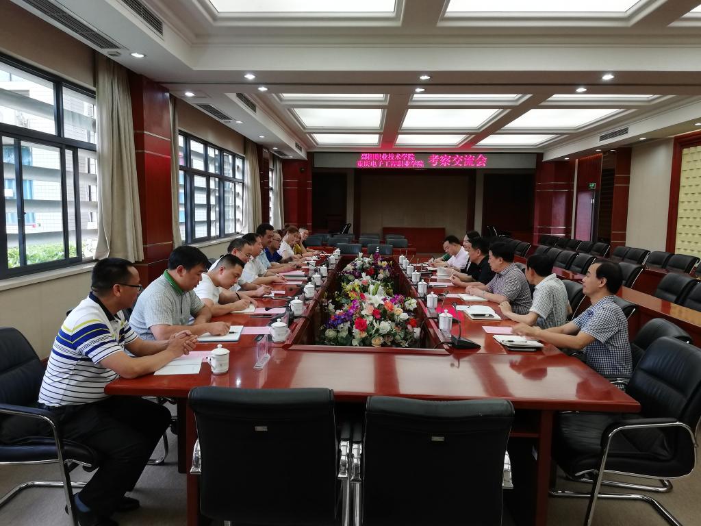2018年6月15日上午,邵阳职业技术学院党委书记李小平一行10人来我校考察交流。我校党委书记孙卫平、副校长王平、党政办公室主任金琳、党委学生工作部部长何光明、数字媒体学院党总支书记彭海深、建筑与材料学院党总支书记严世同、财经管理学院党总支书记谢鑫等领导及相关工作人员参加了交流座谈。