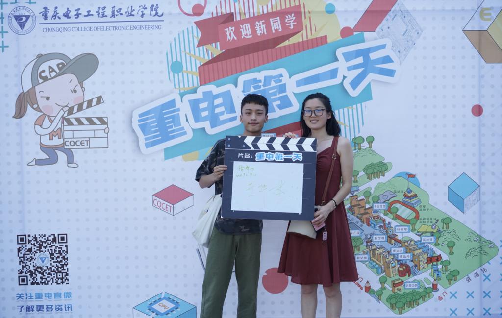 来自信息安全与管理专业的卢仲平说:“在进入学校之前没想过会有这样一个活动,刚开始看见的时候是有一点惊喜,在这个活动上我和父亲一起拍照,这个照片记录下了我的重电第一天,我觉得这是一个非常值得回忆的时刻。”