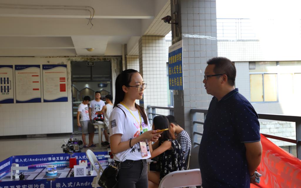 各二级学院除常规的迎新之外,还积极开拓迎新渠道,以其各具特色的迎新服务给新生们留下了深刻而美好的印象。其中智慧健康学院嵌入式专业的学生作品展吸引了不少新生和家长的关注。